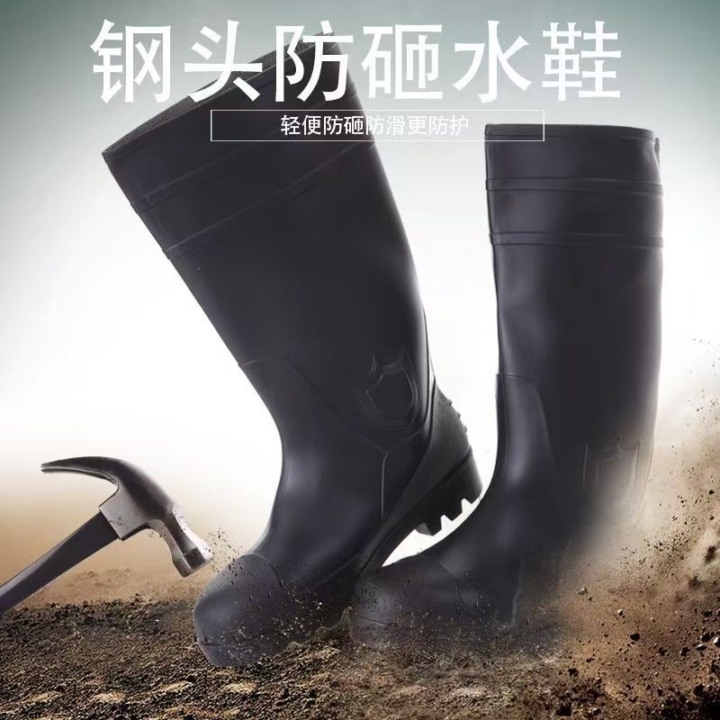 하이탑 스매쉬 방지 강철 발가락 장화, 워터 슈즈, 워터 부츠, 미끄럼 방지 작업 노동 보호 고무신, 장화, 미끄럼 방지 밑창, 내마모성 및 내마모성
