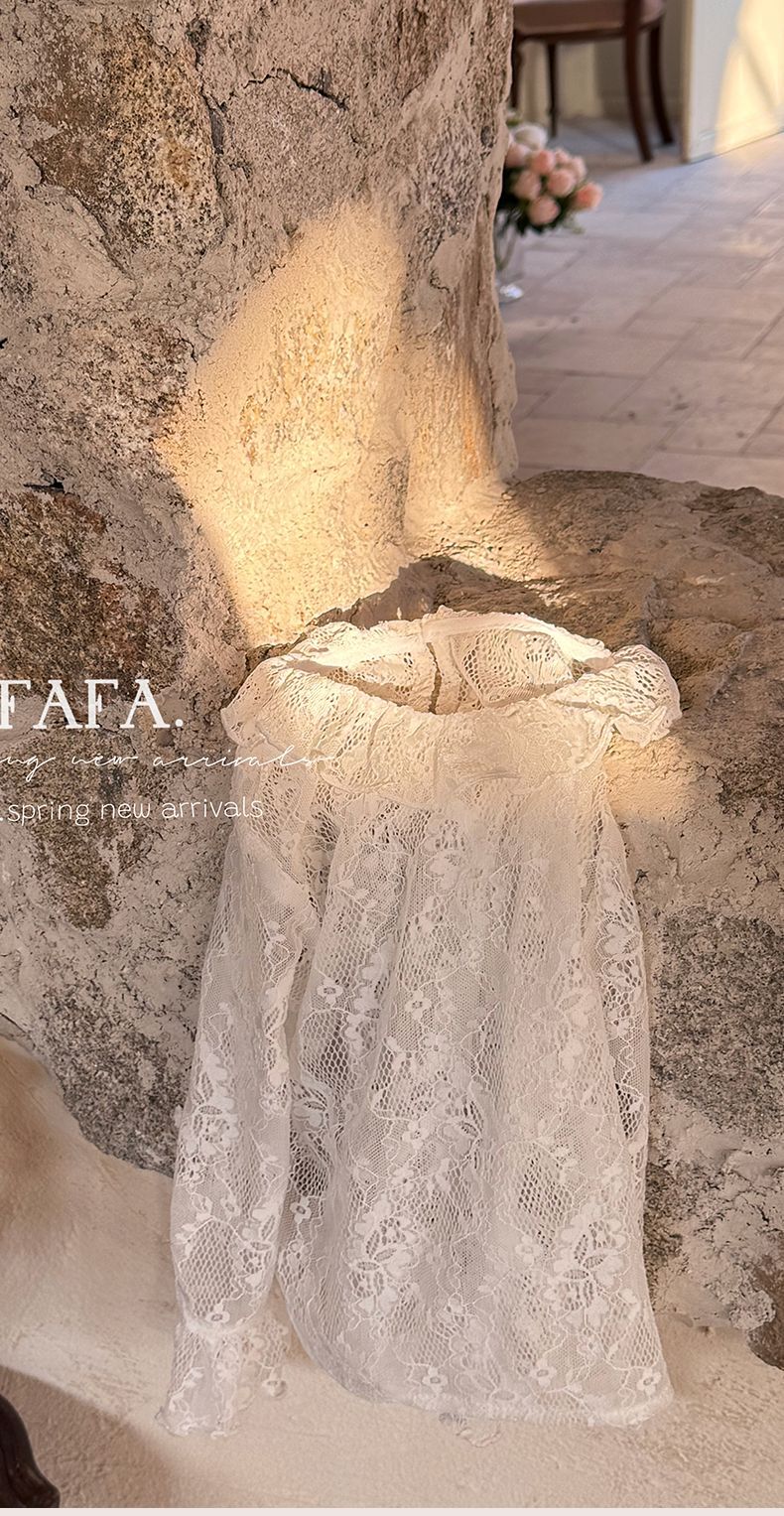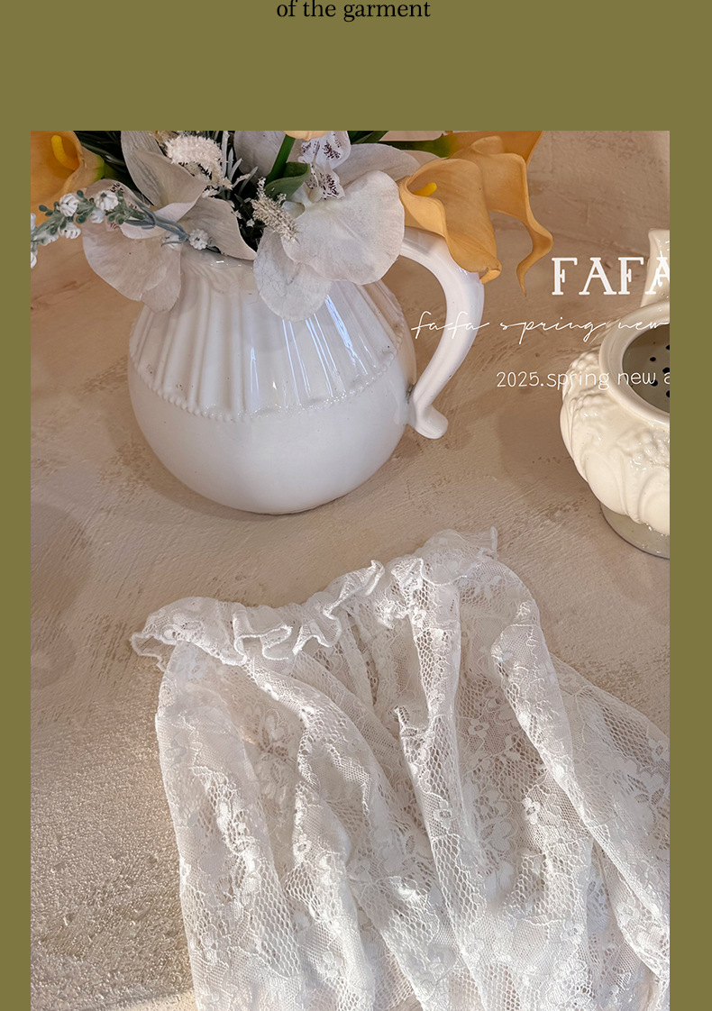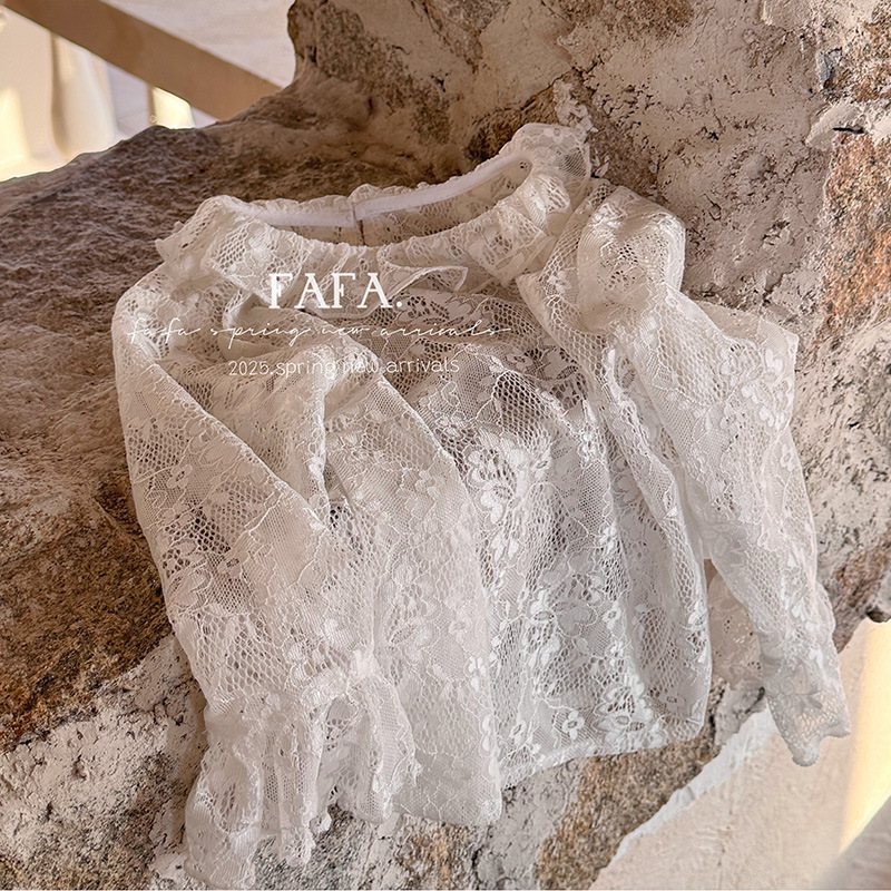 CY259237 Girls Top 2025 봄 초경량 플로랄 메쉬 레이스 할로우 외국식 올매치 베이스 타이드스토어 가기