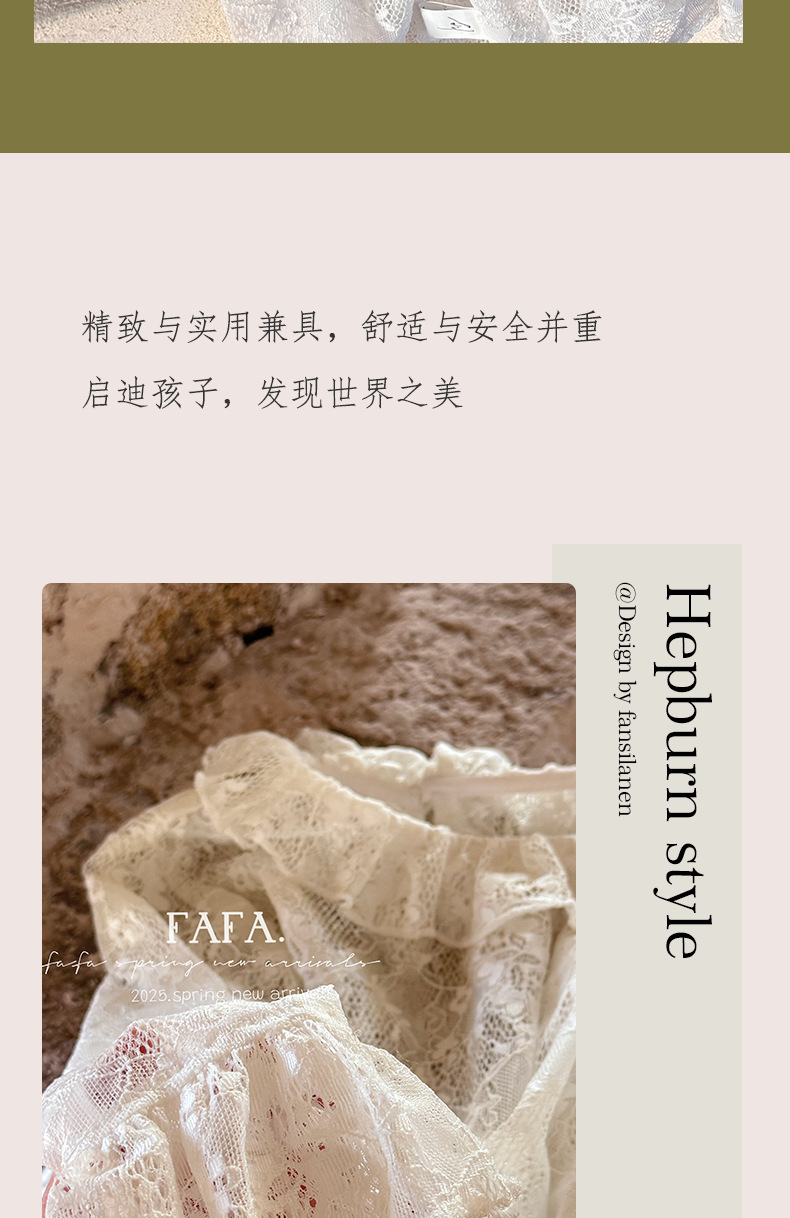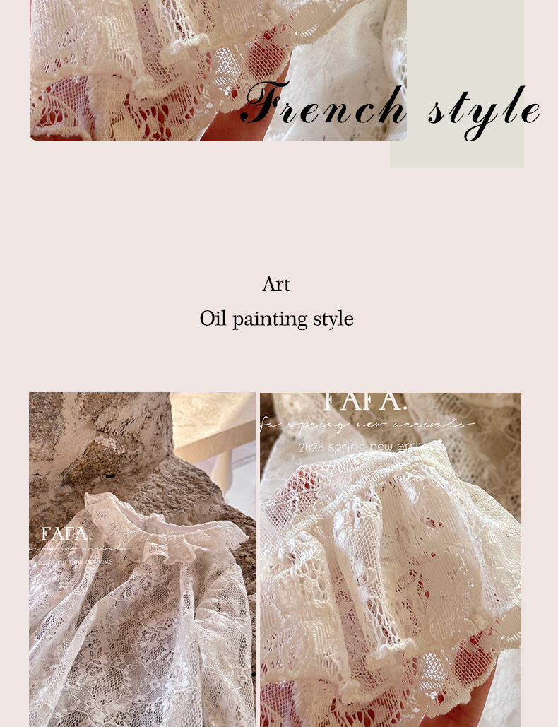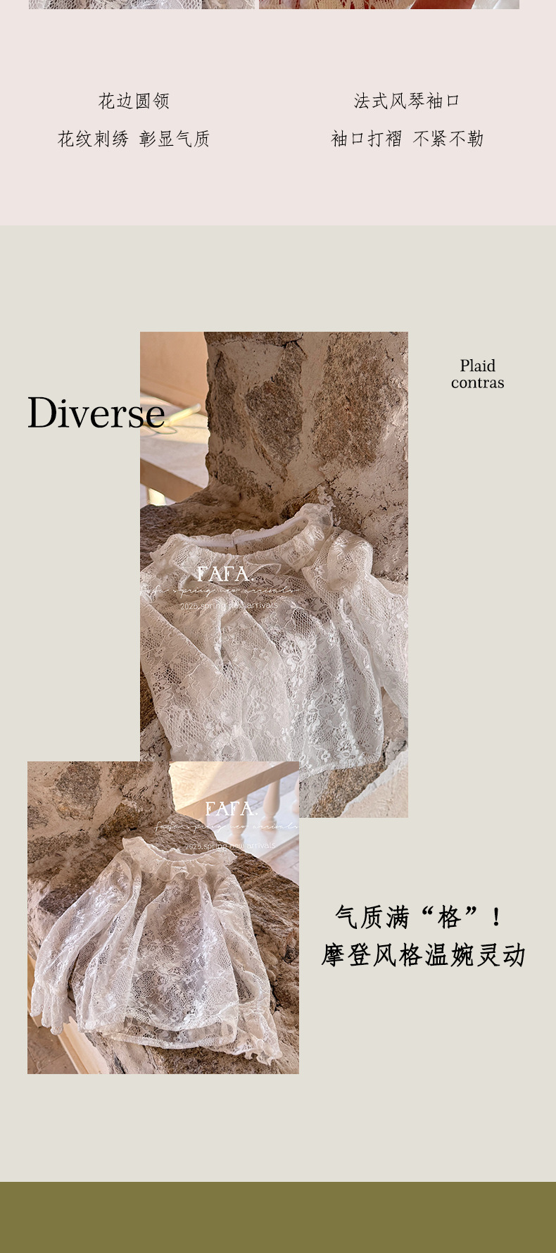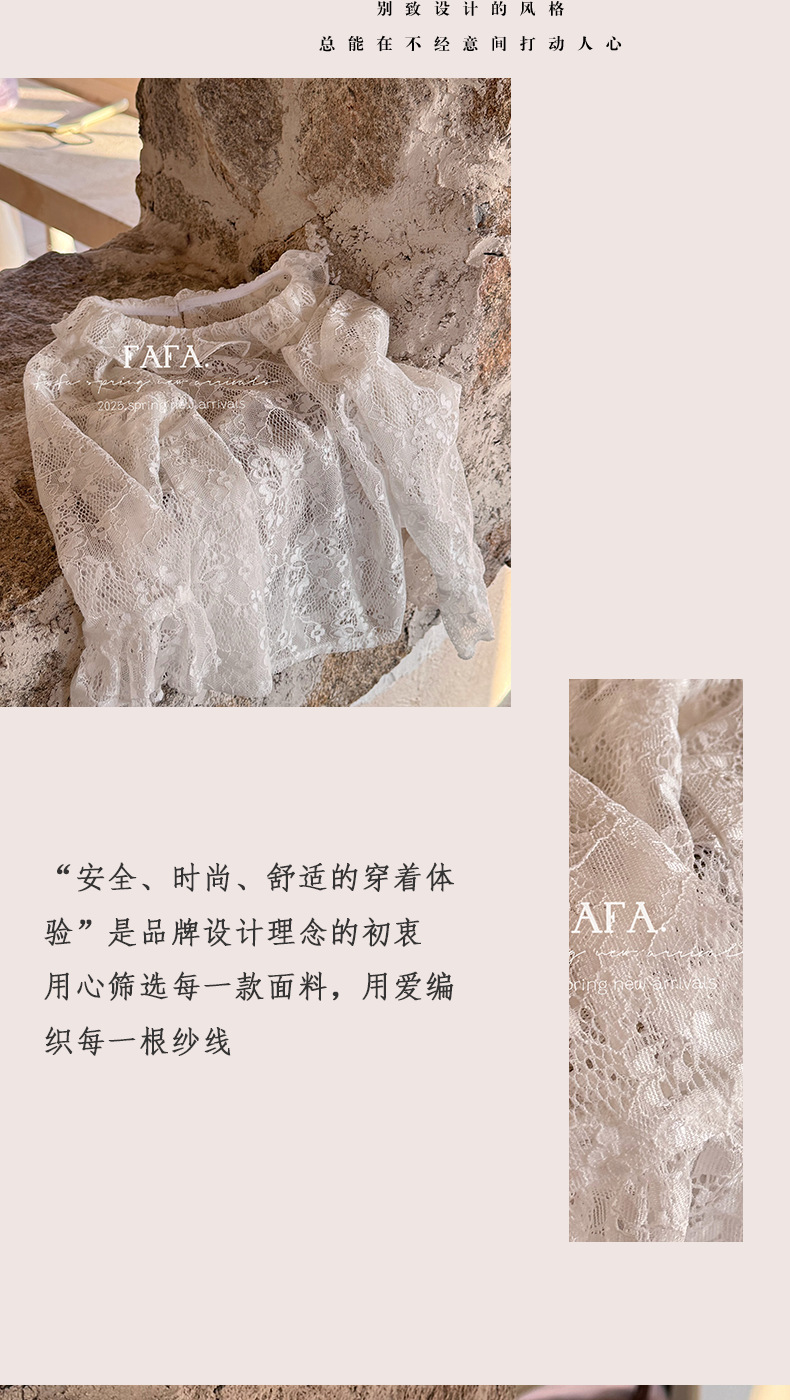 CY259237 Girls Top 2025 봄 초경량 플로랄 메쉬 레이스 할로우 외국식 올매치 베이스 타이드