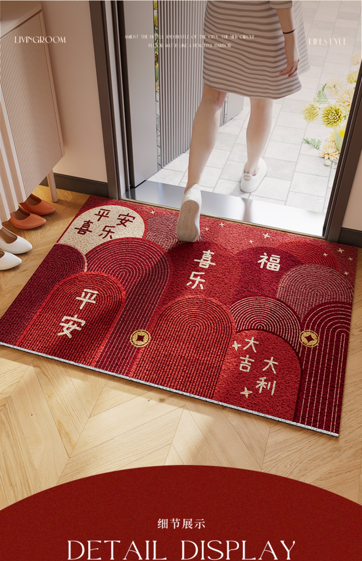 가정용 빨간색 현관 매트, 대형 입구용 PVC 실링크 매트, 문 외부용, 절단 가능, 미끄럼 방지 발매트스토어 가기