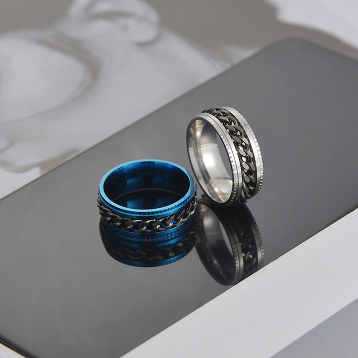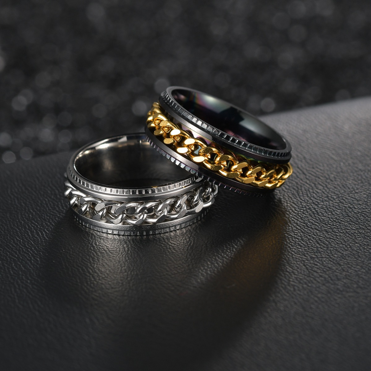 국경 간 뜨거운 보석 남성 체인 회전 스테인레스 스틸 감압 링 체인 링 옵션 멀티 컬러 배치