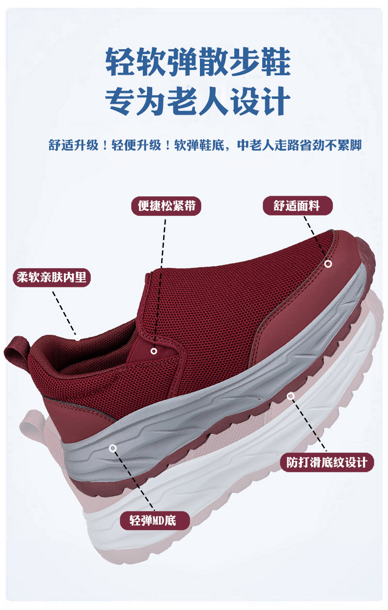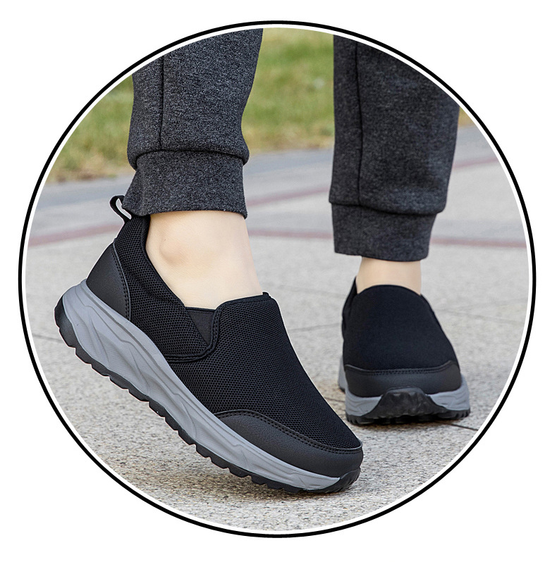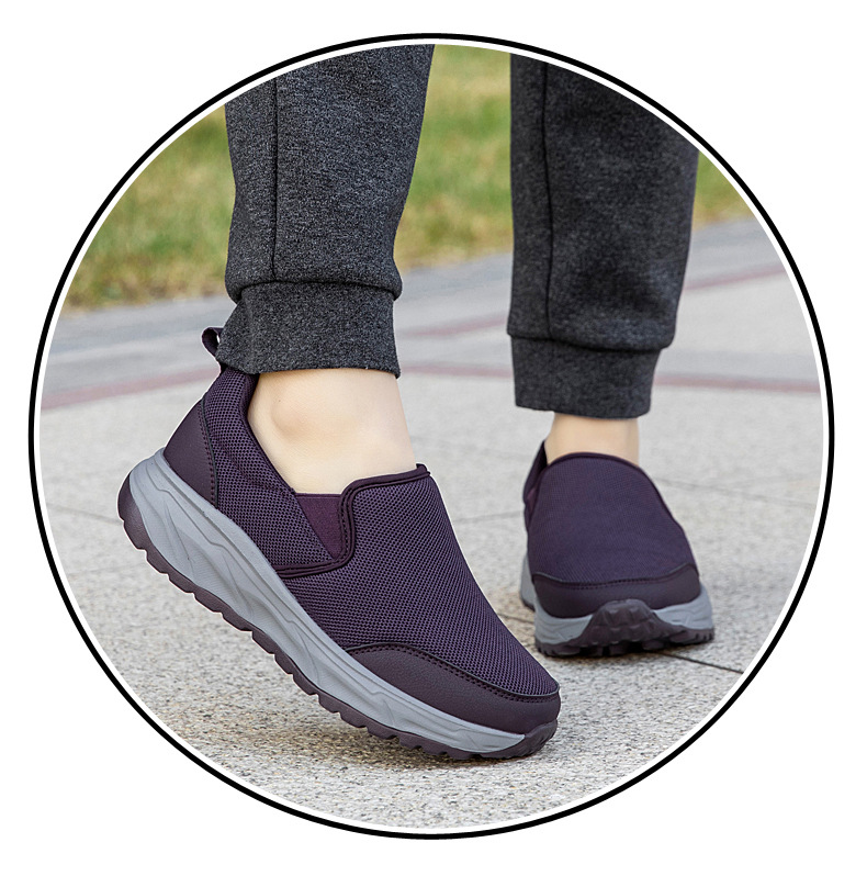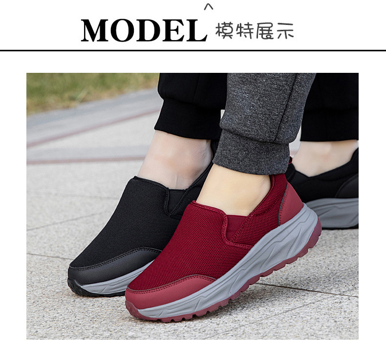 봄 2025 새로운 국경 플러스 사이즈 넓은 워킹 신발 노인 애호가를위한 여성의 통기성 슬립 온 신발 노인을위한 경량스토어 가기