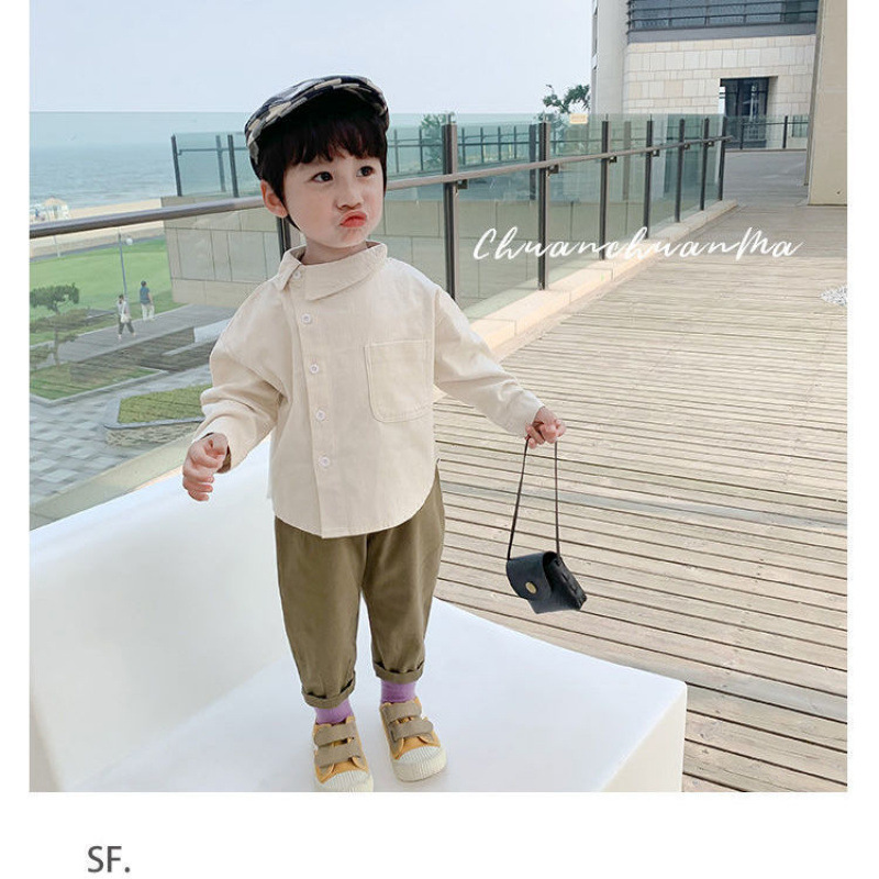 남자들의 긴팔 셔츠 한국식 2025 독특한 트렌디 봄 · 가을 세련 된 작은 형제 아이들의 봄과 가을 최고 트렌디