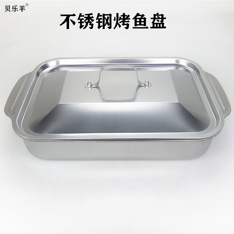 烤鱼盘不锈钢加深烤盘加厚长方形不沾鱼盘带盖海鲜盘双耳托盘端盘