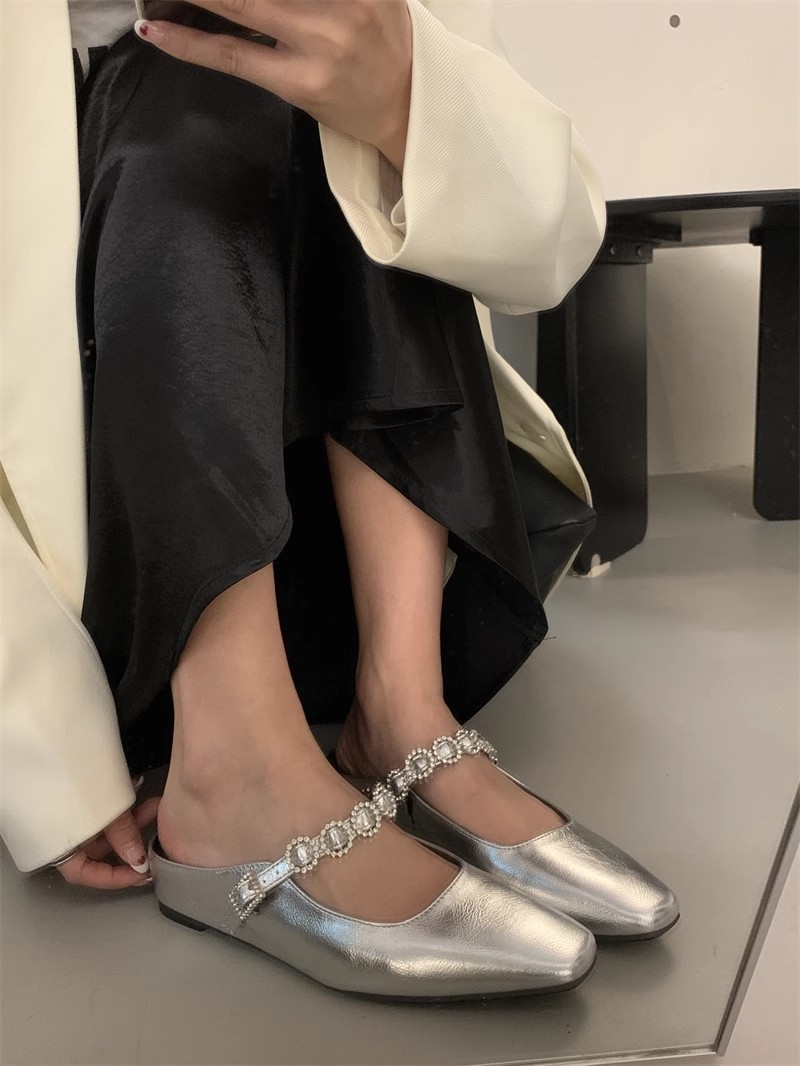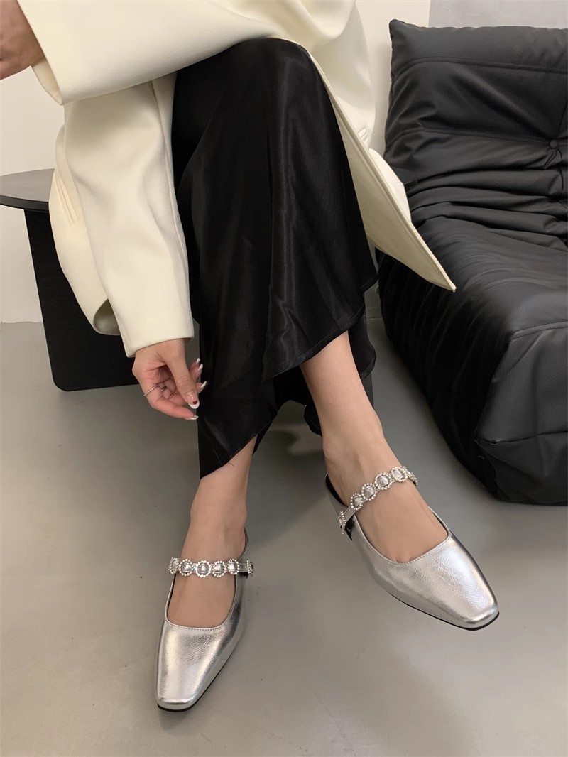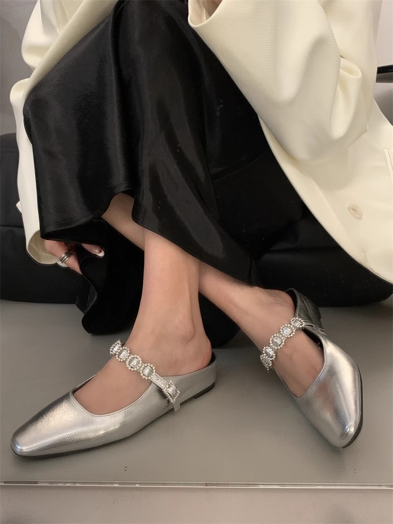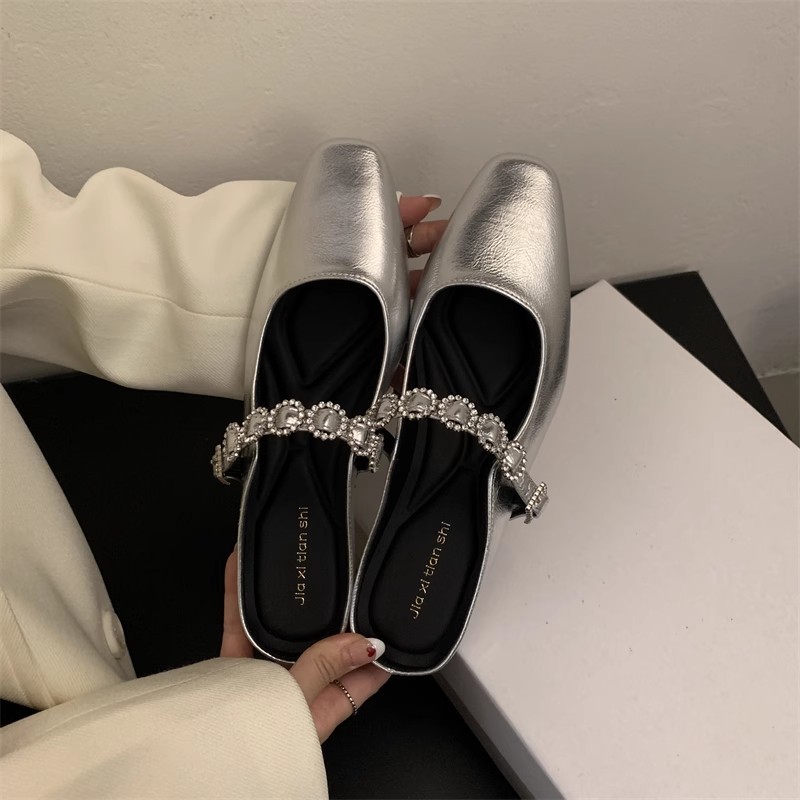 2025 새로운 이브닝 스타일 하프 지원 펄 메리 제인 여성 신발 바오터 슬리퍼 여성 아우터 실버 메리 제인 여성 신발스토어 가기