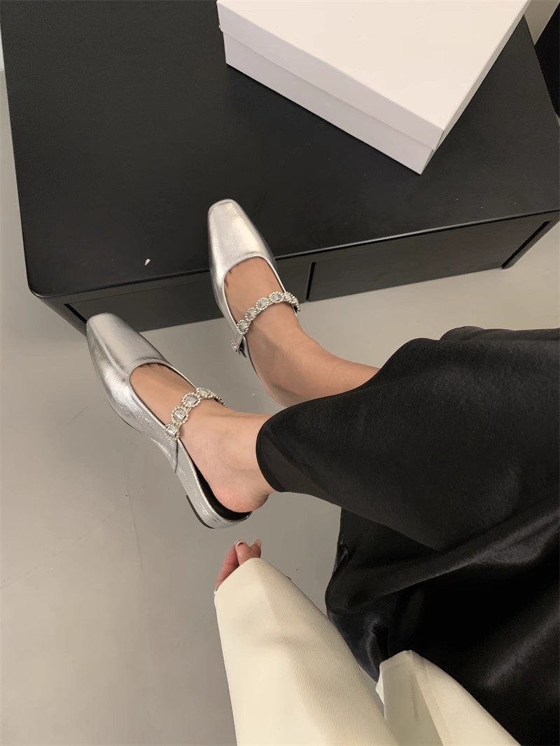 2025 새로운 이브닝 스타일 하프 지원 펄 메리 제인 여성 신발 바오터 슬리퍼 여성 아우터 실버 메리 제인 여성 신발
