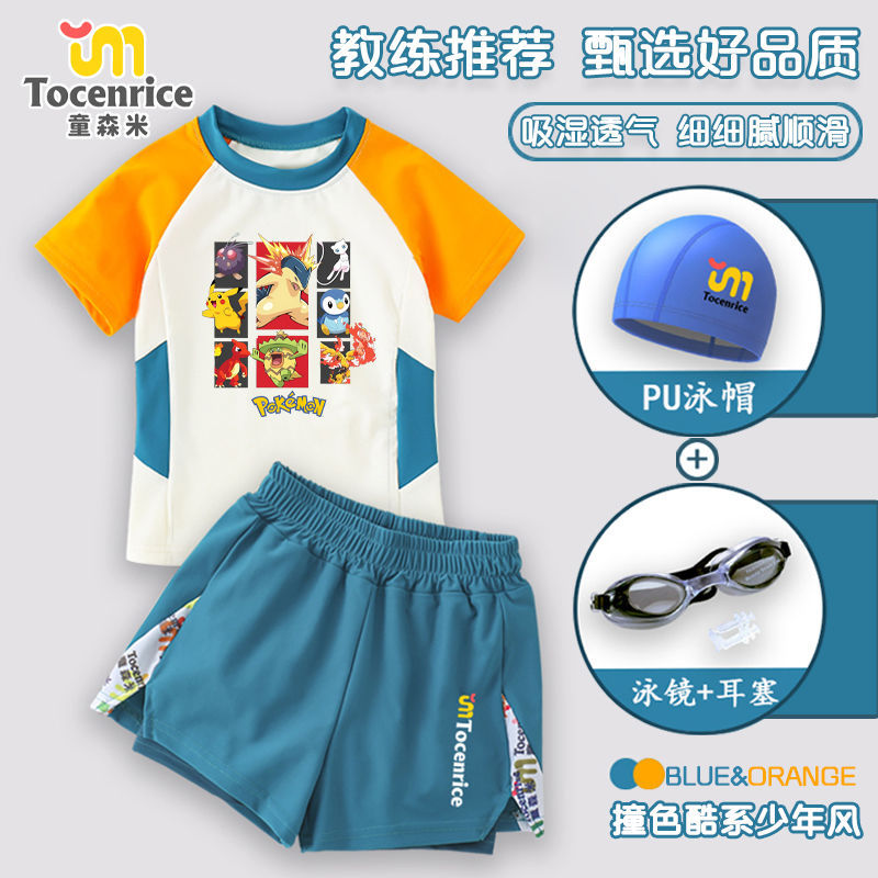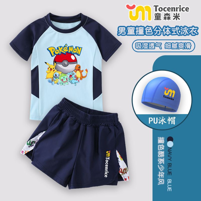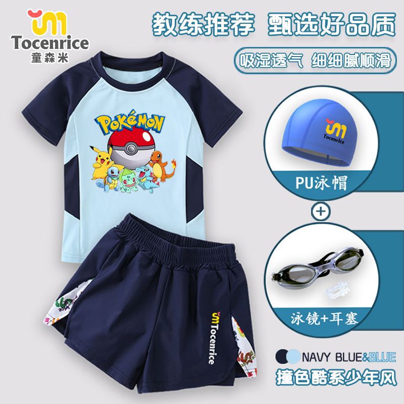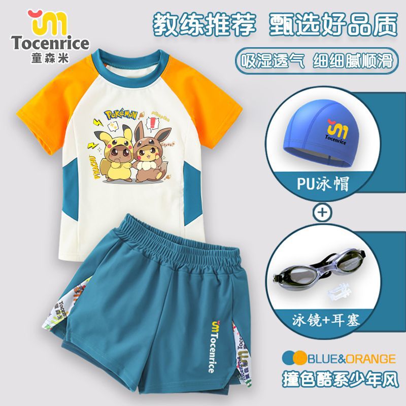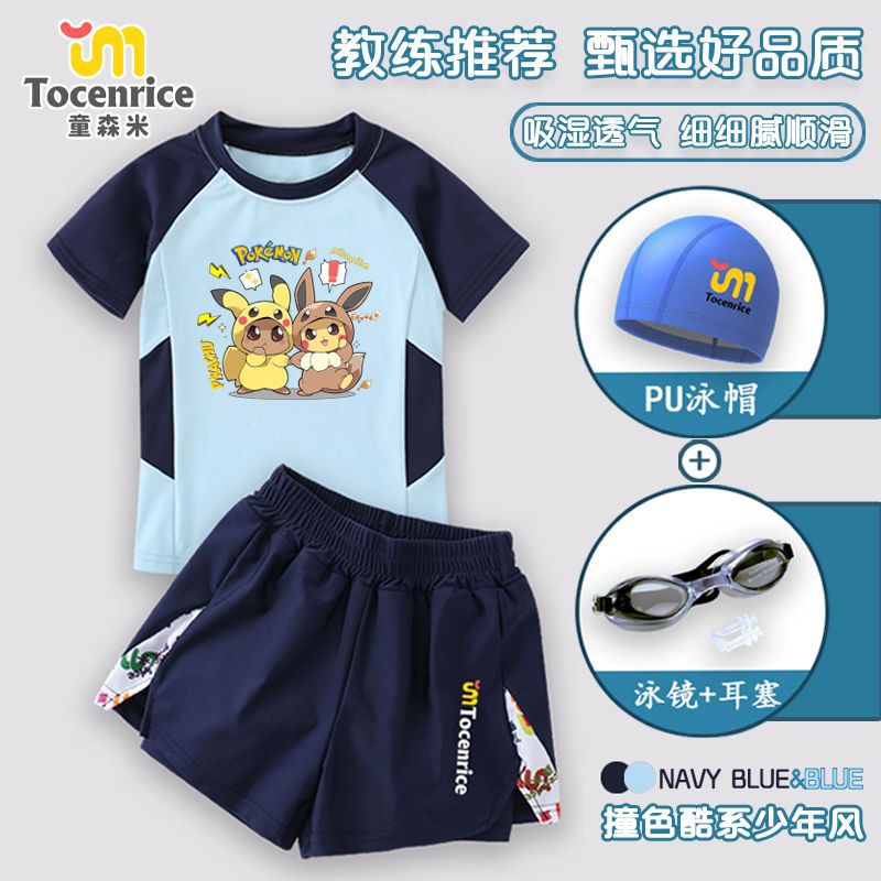 Xinkemeng 어린이 수영복 소년 분할 빠른 건조 태양 보호 2025 새로운 피카추 중 및 대형 어린이 전문 훈련 조수스토어 가기