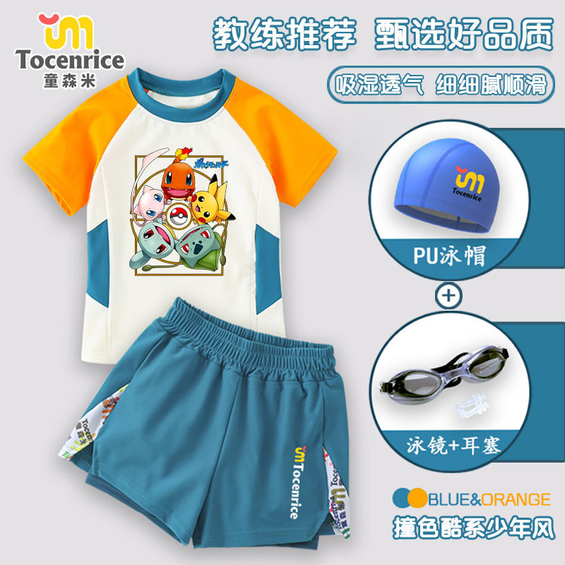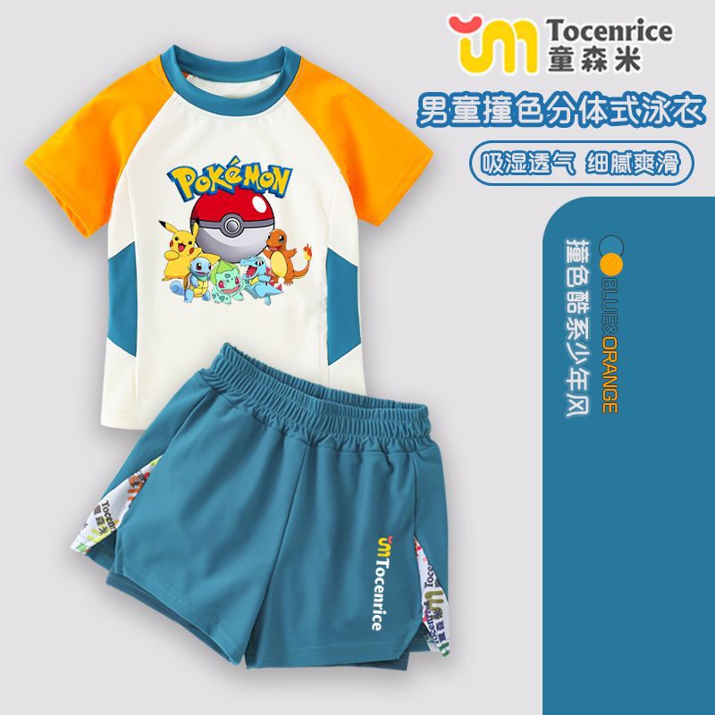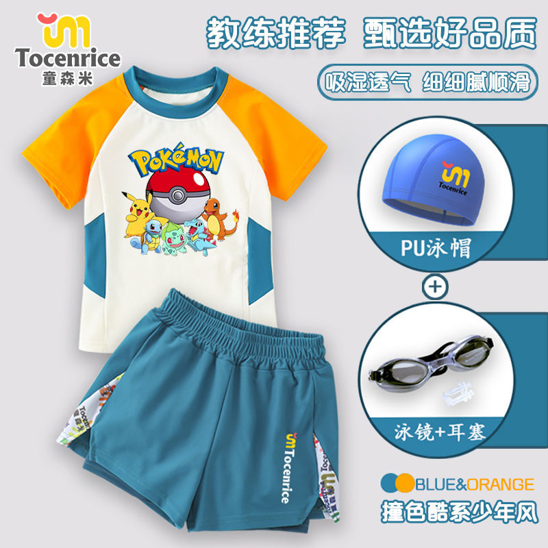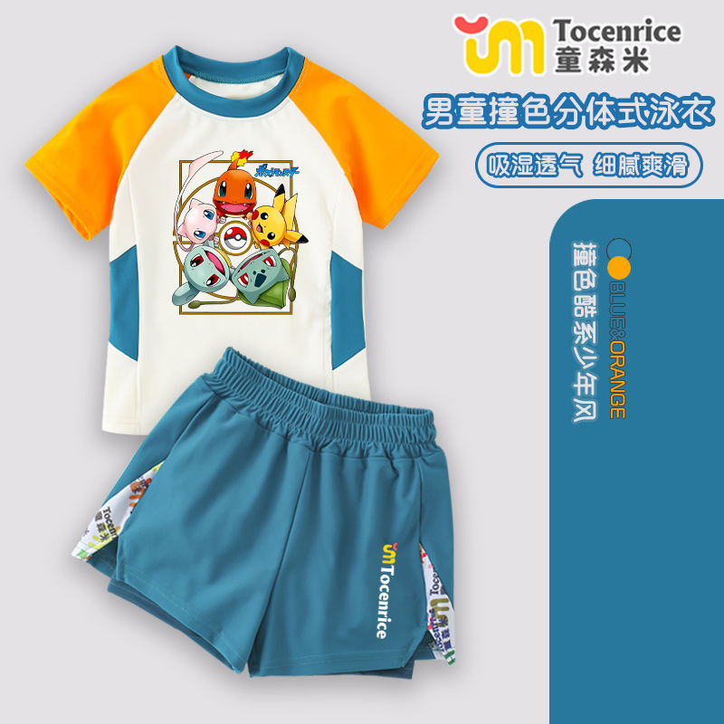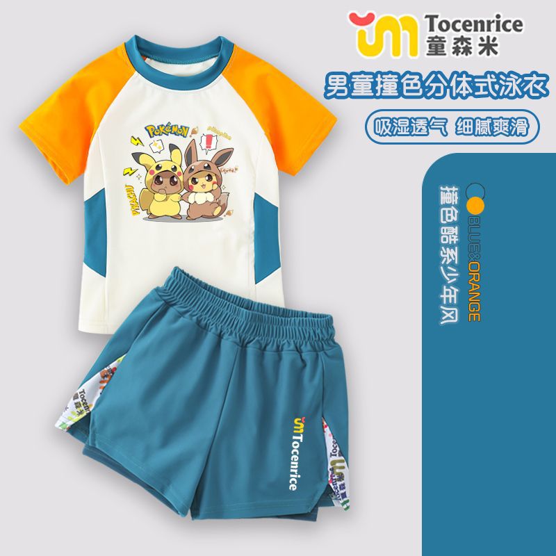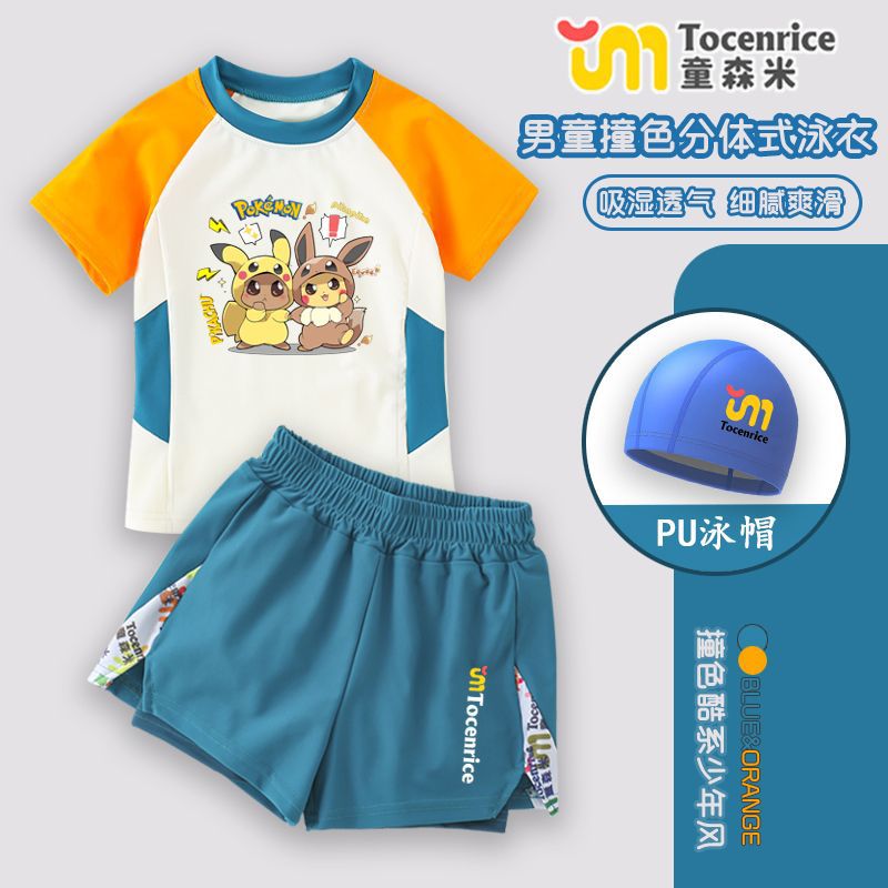 Xinkemeng 어린이 수영복 소년 분할 빠른 건조 태양 보호 2025 새로운 피카추 중 및 대형 어린이 전문 훈련 조수스토어 가기