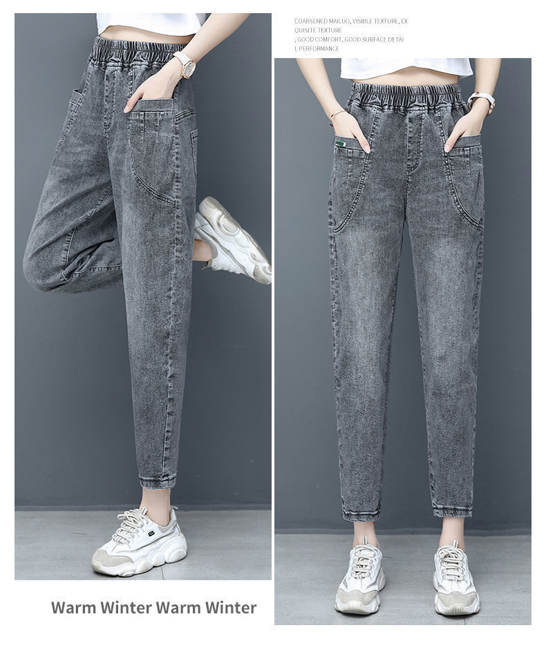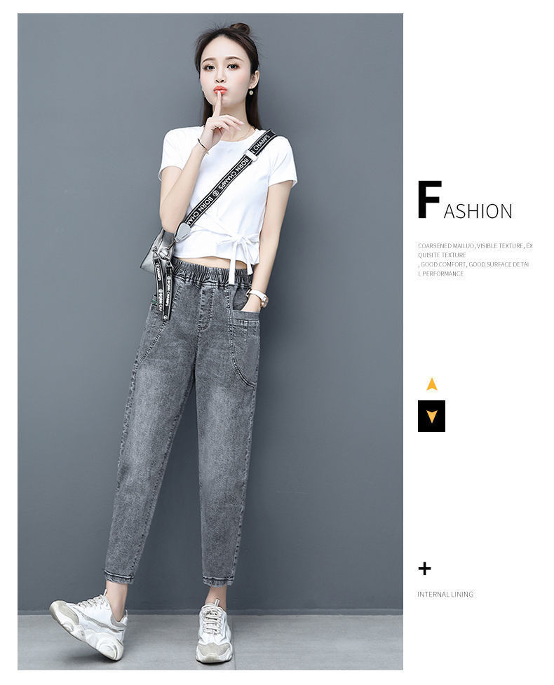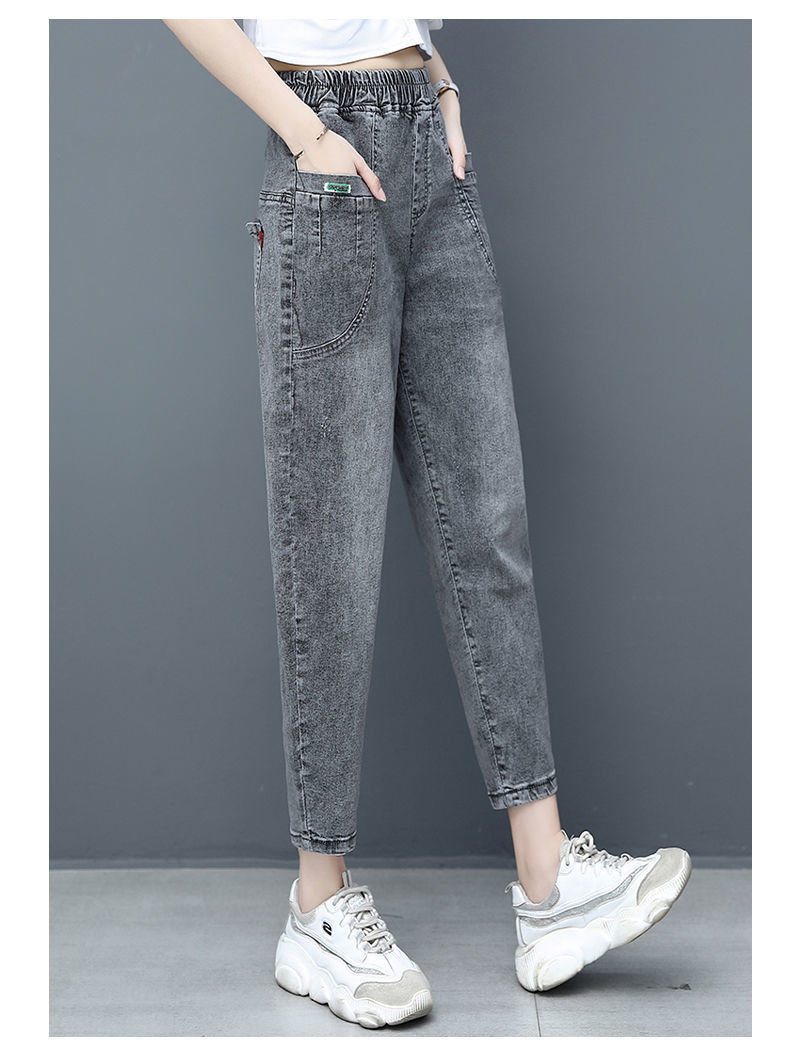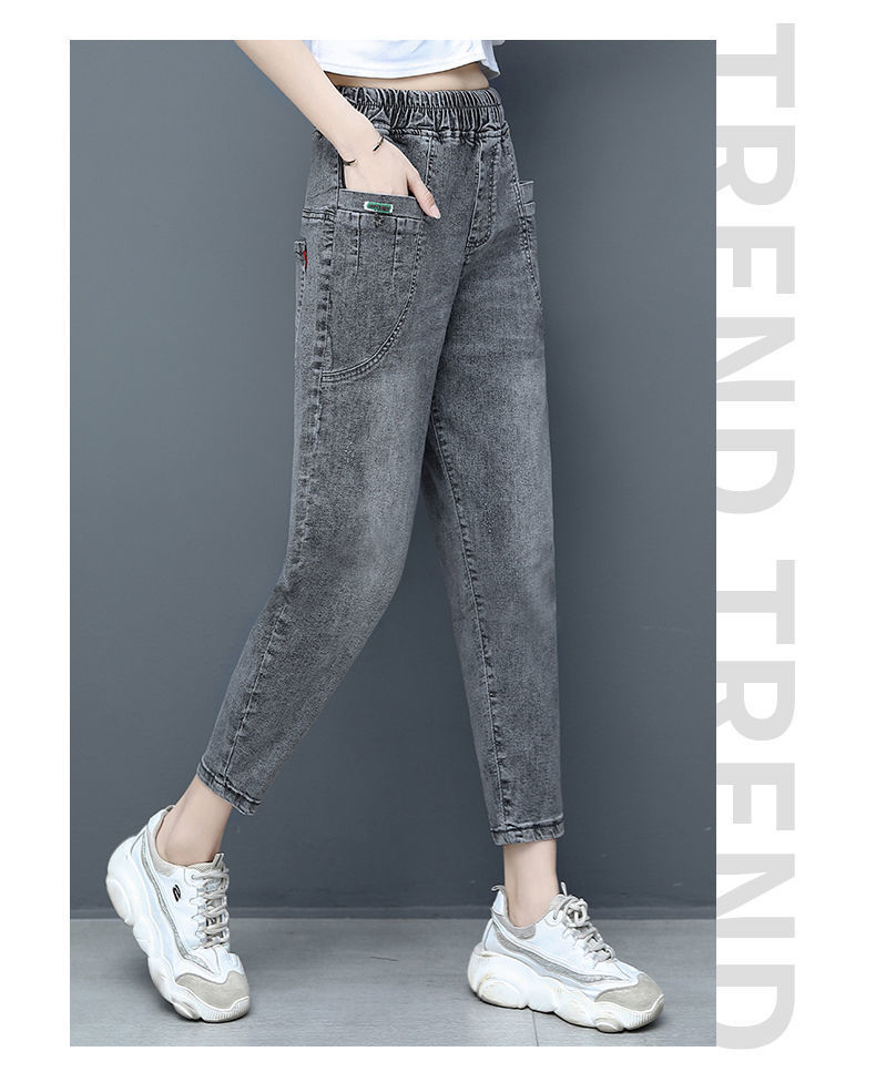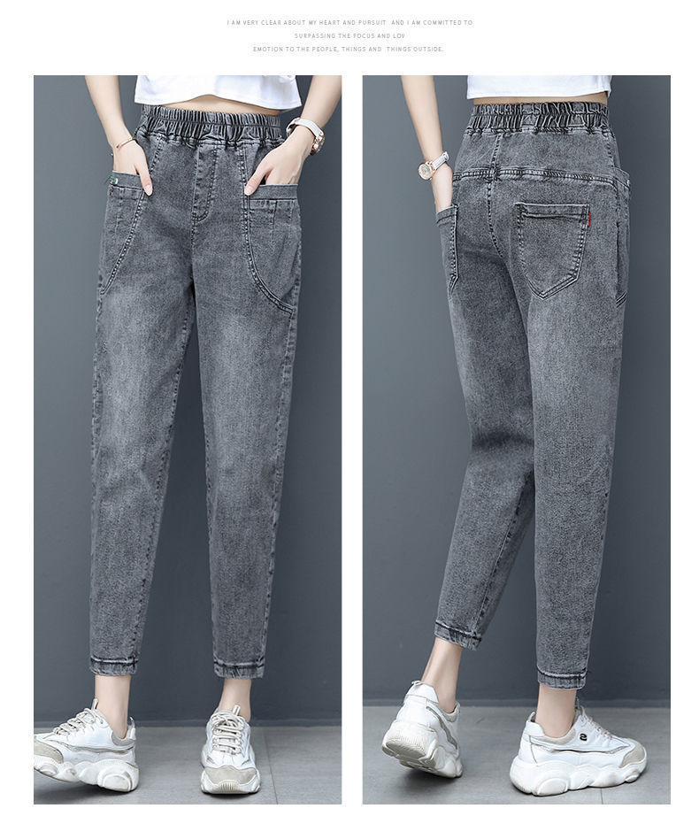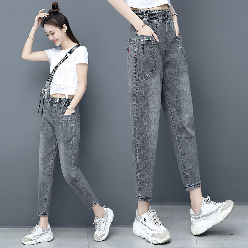 탄성 허리 청바지 여성용 하렘 바지 2024 새로운 높은 허리 크롭 토레 바지 느슨한 플러스 사이즈 무 바지스토어 가기