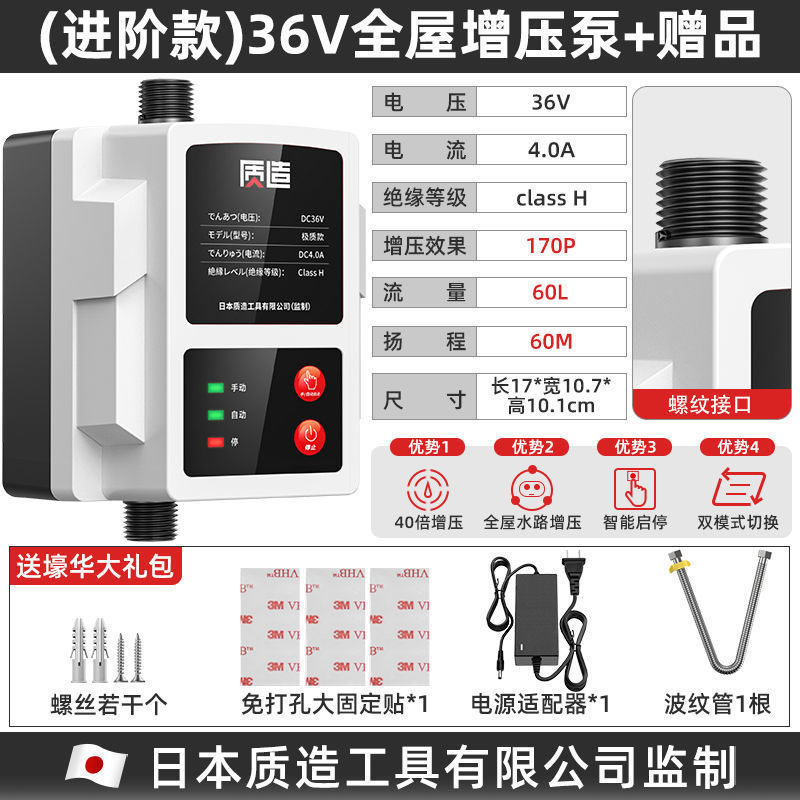 • [일본 품질] 안전하고 조용한 부스터 펌프 - 40배 부스터 [극한 품질 모델] 36V 집 전체 부스터 펌프