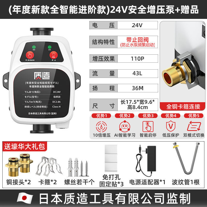 • [일본제] 안전하고 조용한 부스터 펌프 - 20배 부스터 [고급 모델] AI 인텔리전트 24V