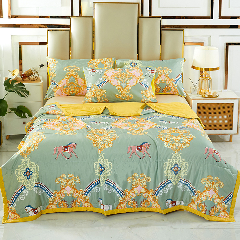 세척 가능한 여름 에어컨 퀼트 피부 친화적 인 어린이 싱글 및 더블 여름 퀼트 인쇄 라이트 럭셔리 얇은 기숙사 여름 이불