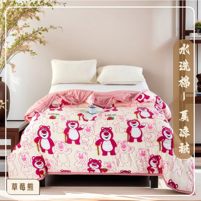 • 워시드 코튼 여름 이불 - 딸기곰