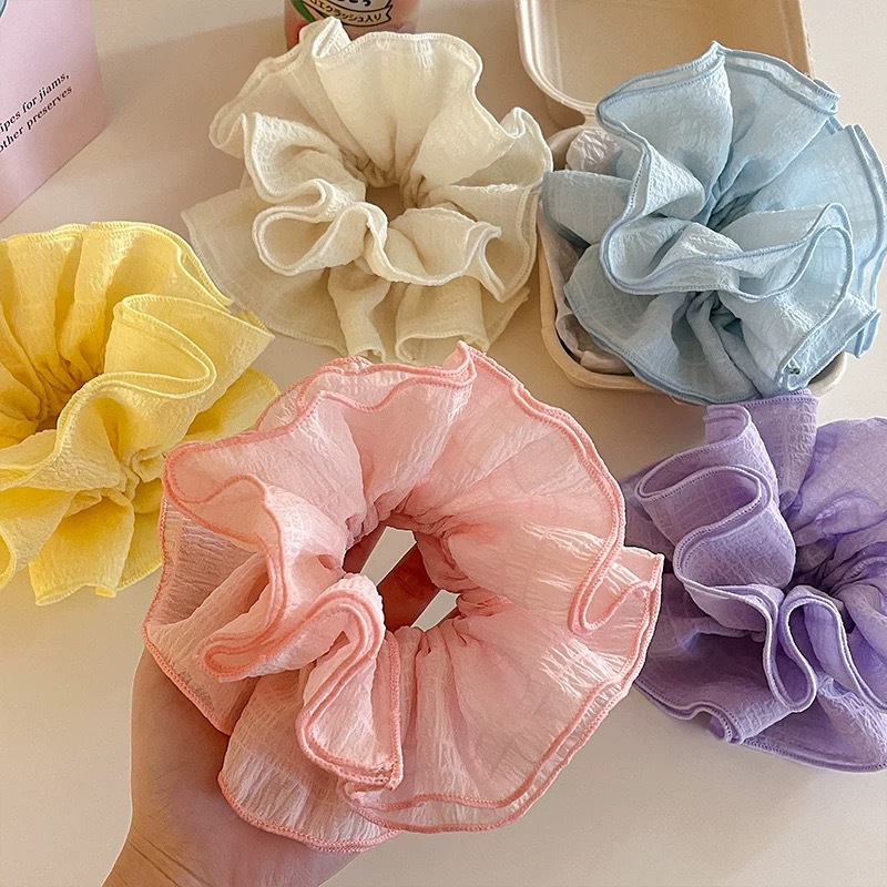 한국 스타일 새로운 불멸의 스타일 캔디 컬러 메쉬 멀티 레이어 귀 가장자리 대형 볼 링 헤드 로프 게으른 대기 감각 페이테일 헤어 링스토어 가기