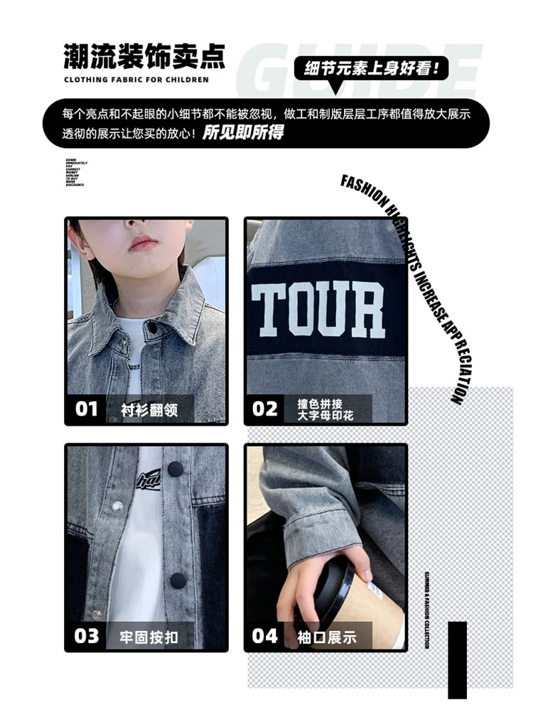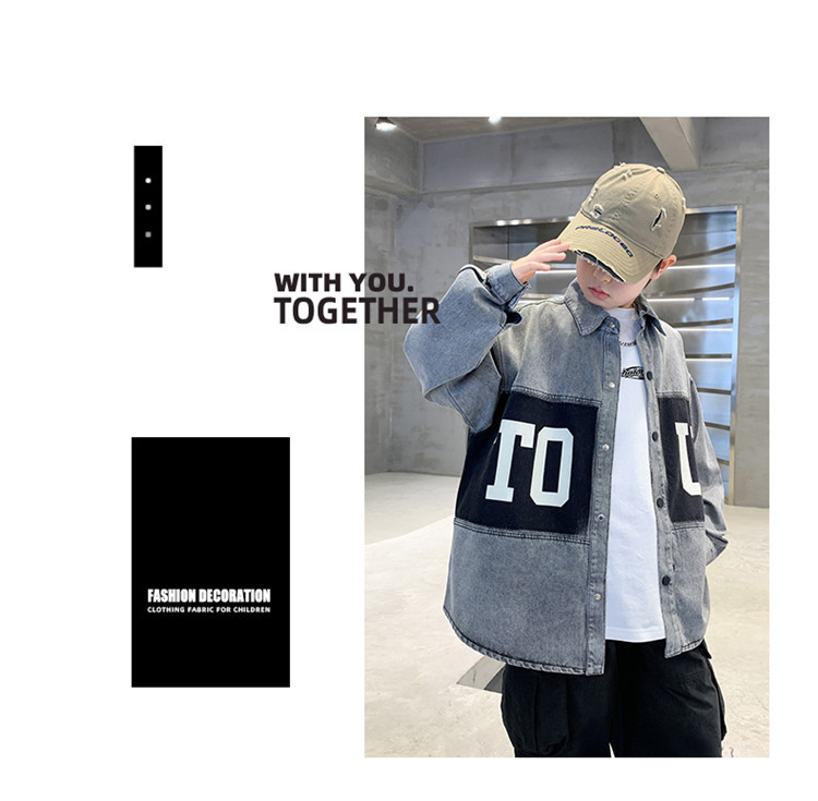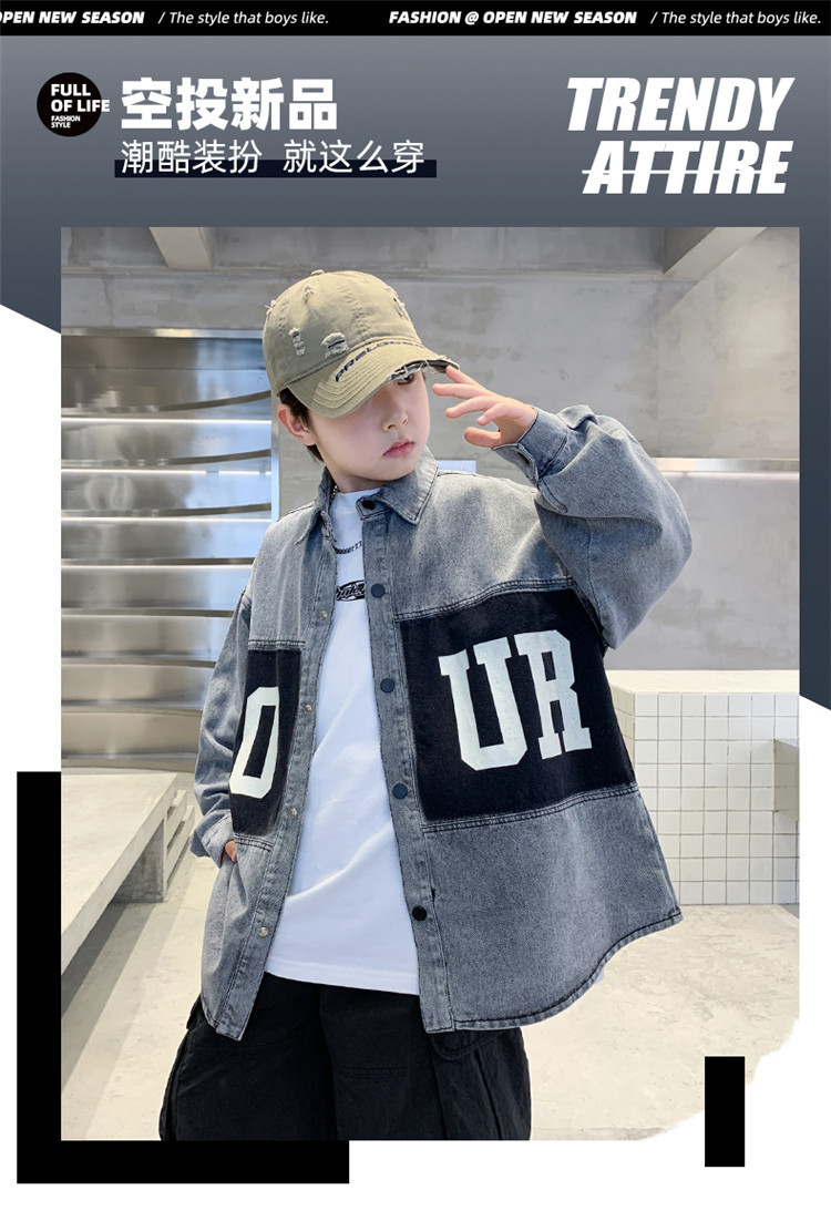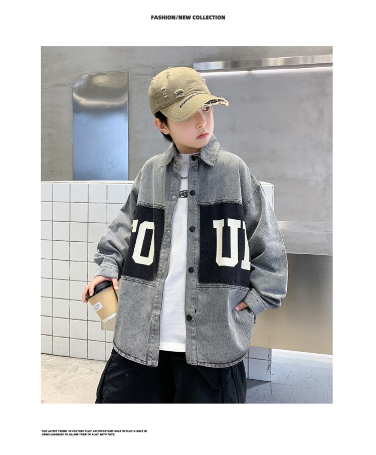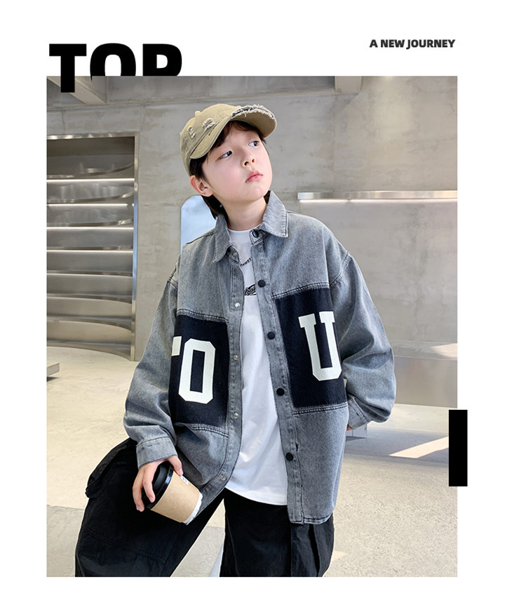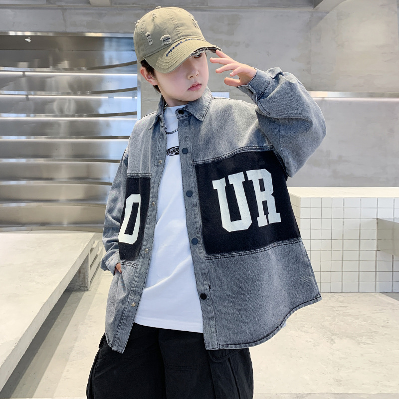 소년 그라데이션 데님 재킷 봄, 가을 2025 새로운 아동 가을 셔츠 큰 아동 재킷 얇은 스타일 스트리트웨어스토어 가기