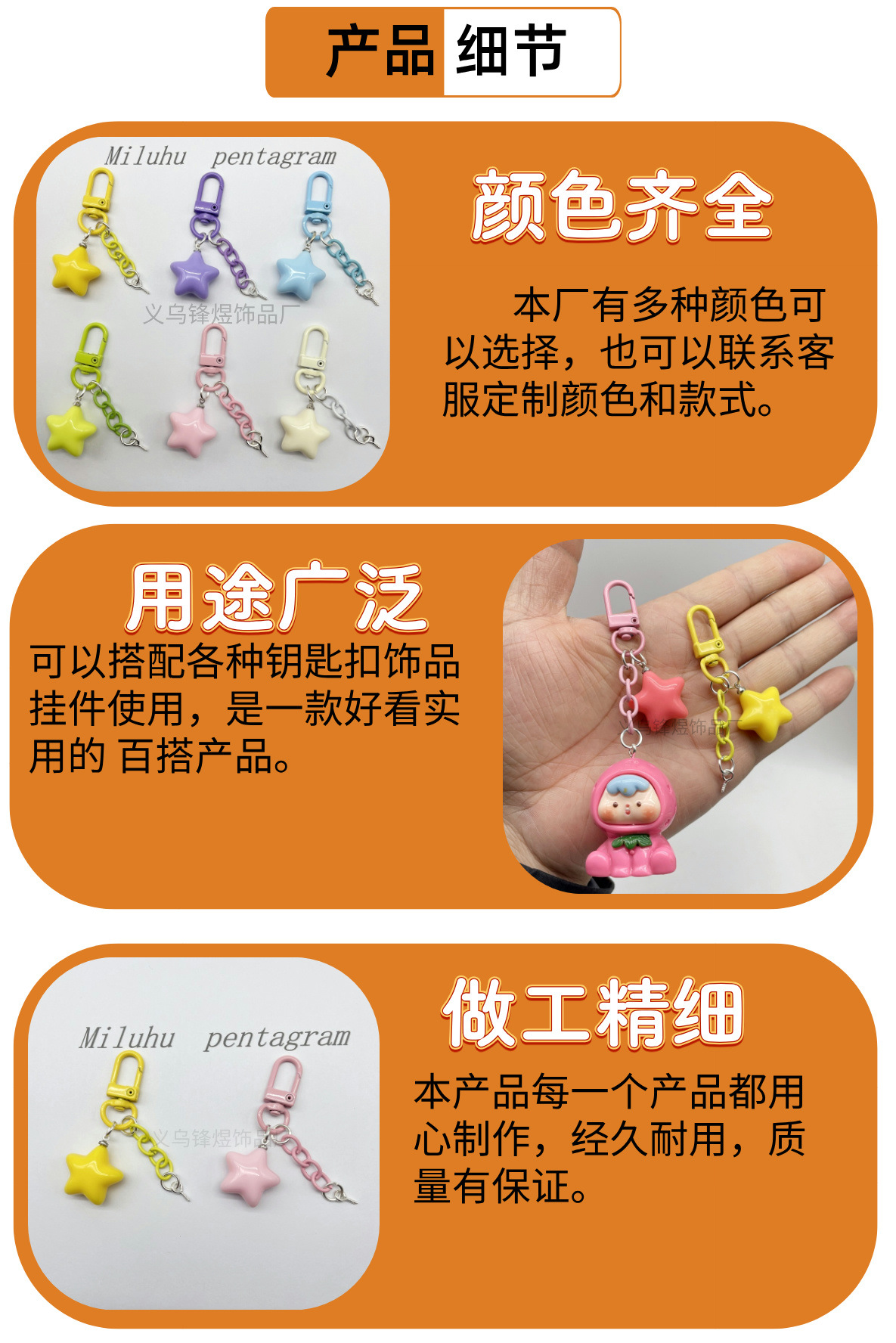 새로운 통통한 인스타 감성 오각별 열쇠고리 DIY 액세서리 가방 장식품 마카롱 다용도스토어 가기