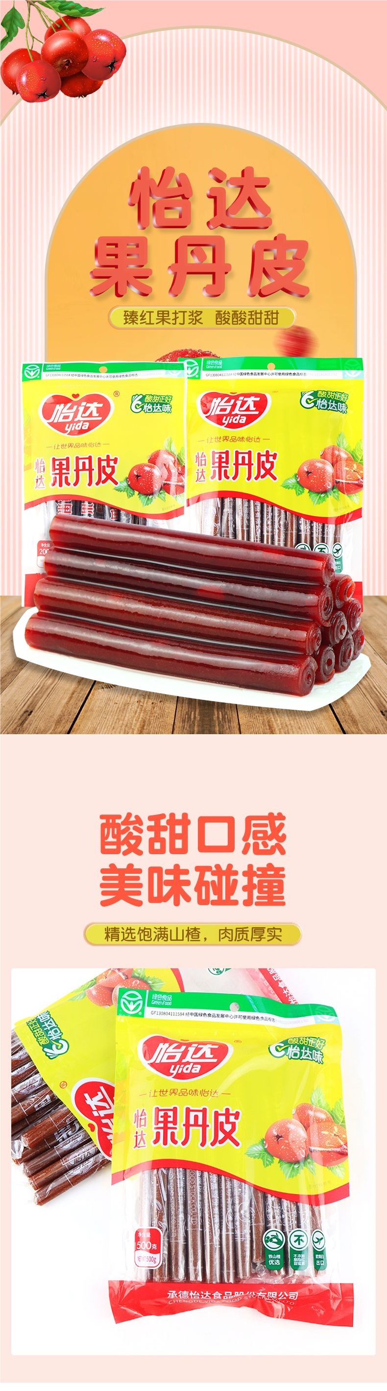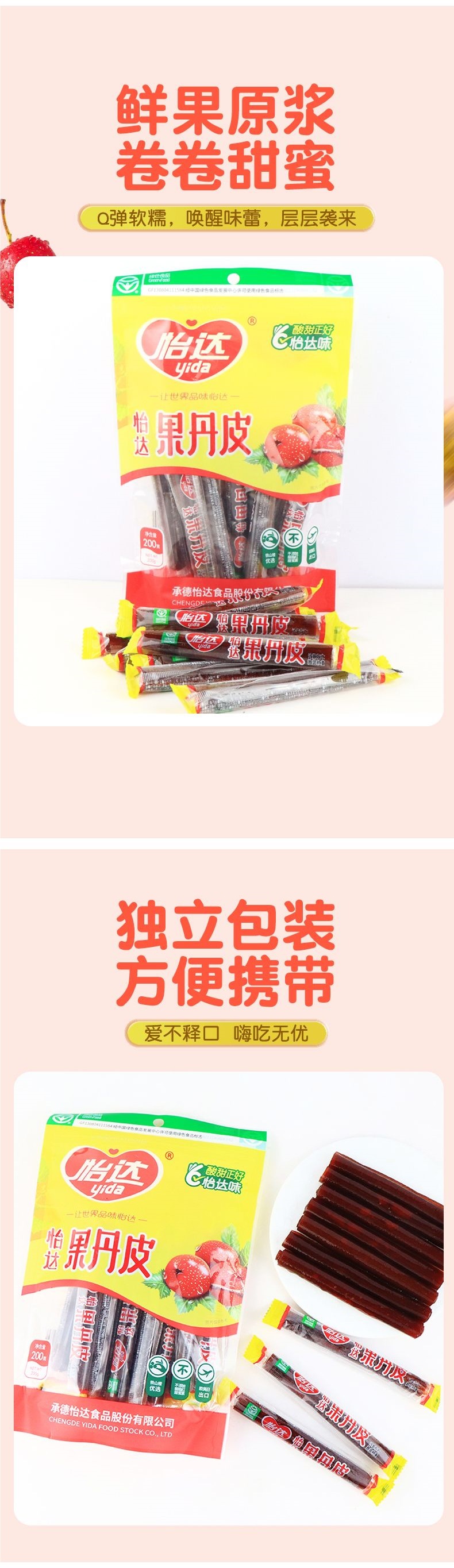 Yida 클래식 구식 맛 과일 팬 가방 호손 스틱 달콤하고 신 호손 롤 보존 과일 식욕을 돋우는 간식스토어 가기