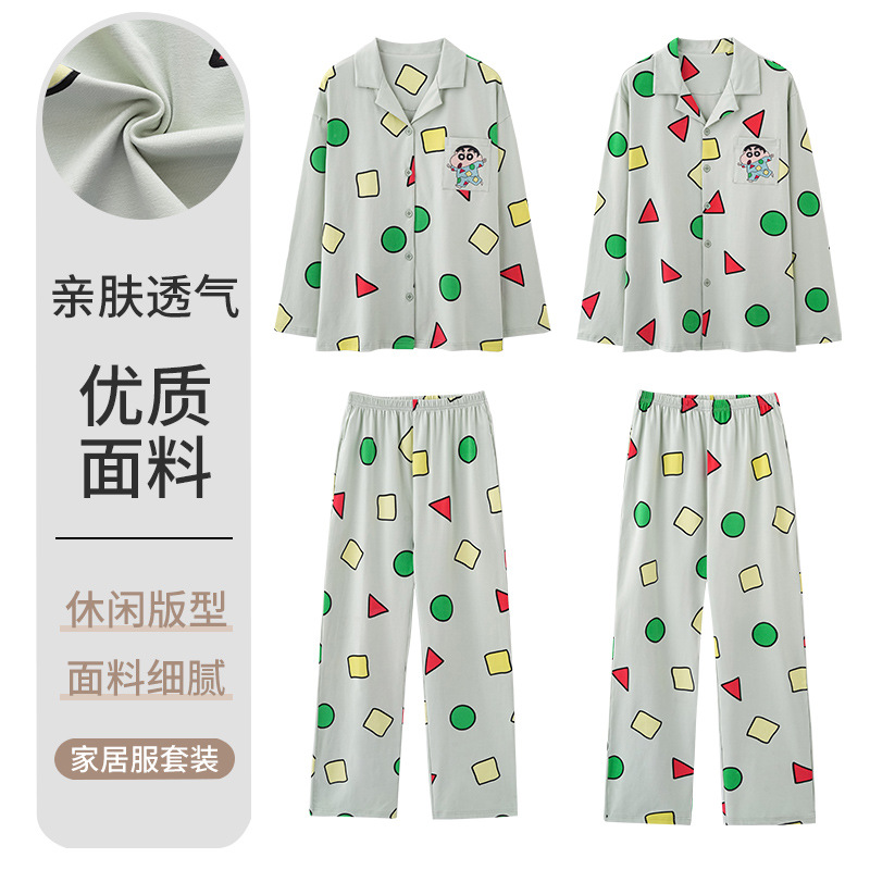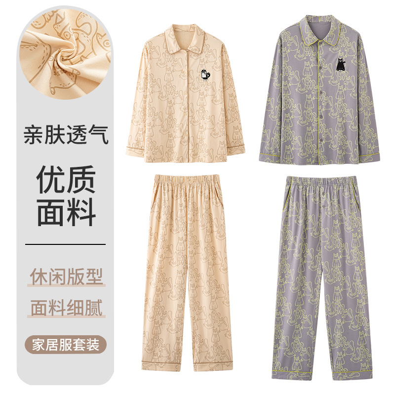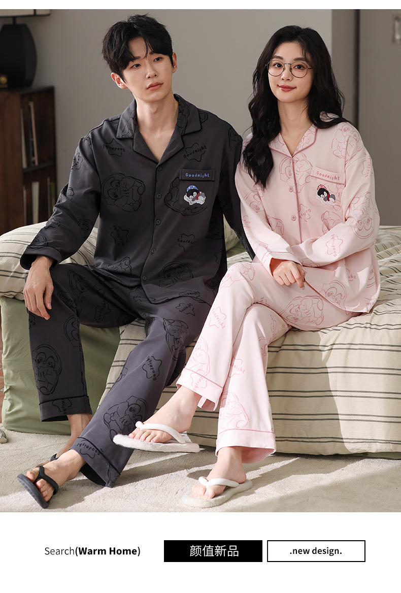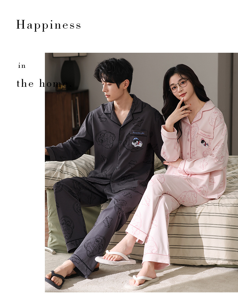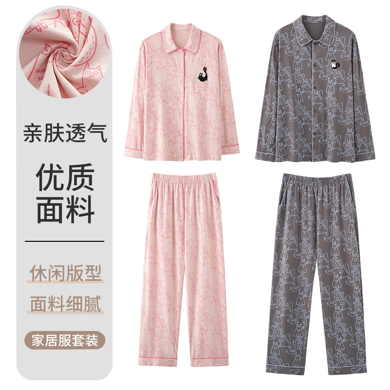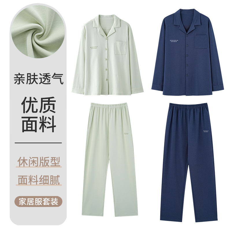 봄과 가을 새 커플 잠옷 양면 니트 코튼 긴 소매 카디건 세트 간단한 남성 플러스 사이즈 홈 의류스토어 가기