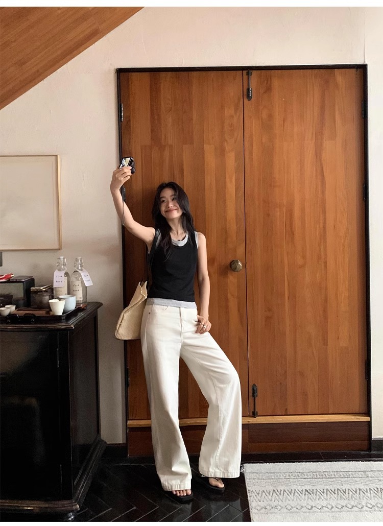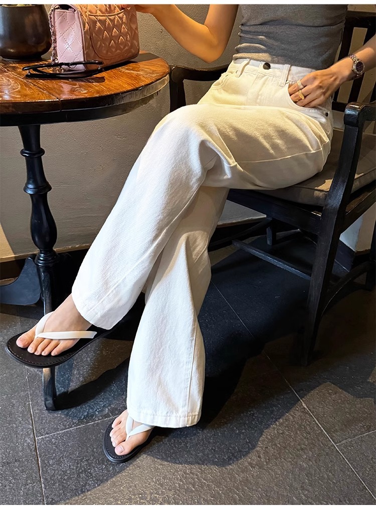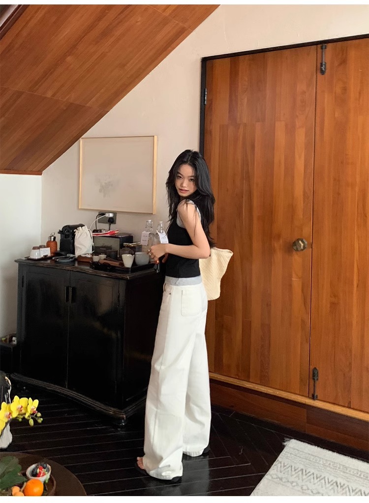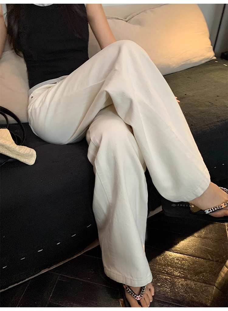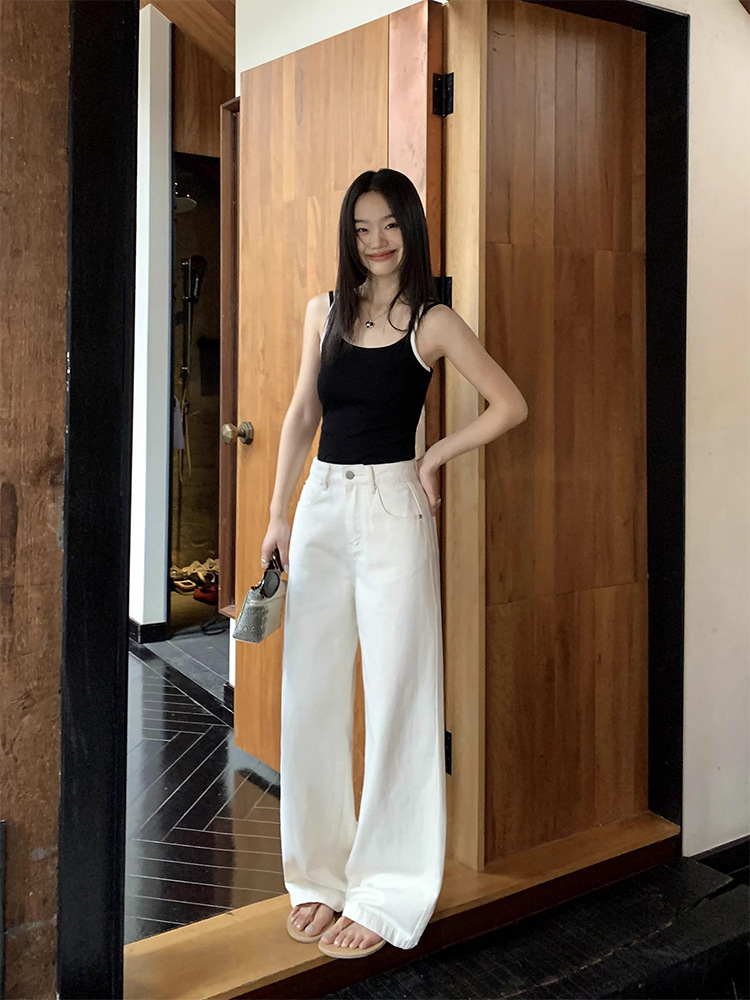 작은 좁은 2025 봄 흰색 넓은 다리 청바지 여성의 새로운 높은 허리 슬리밍 스트레이트 더미 바지스토어 가기