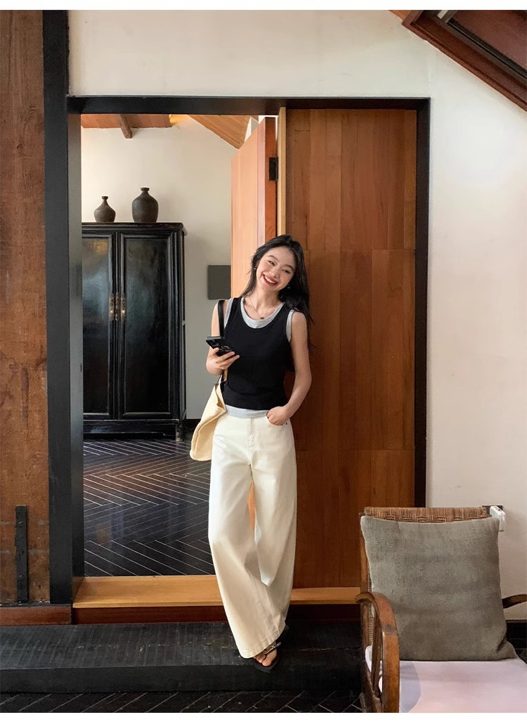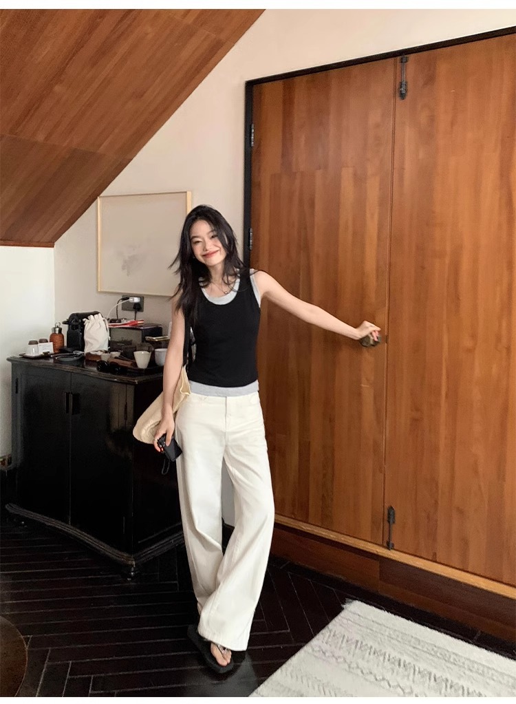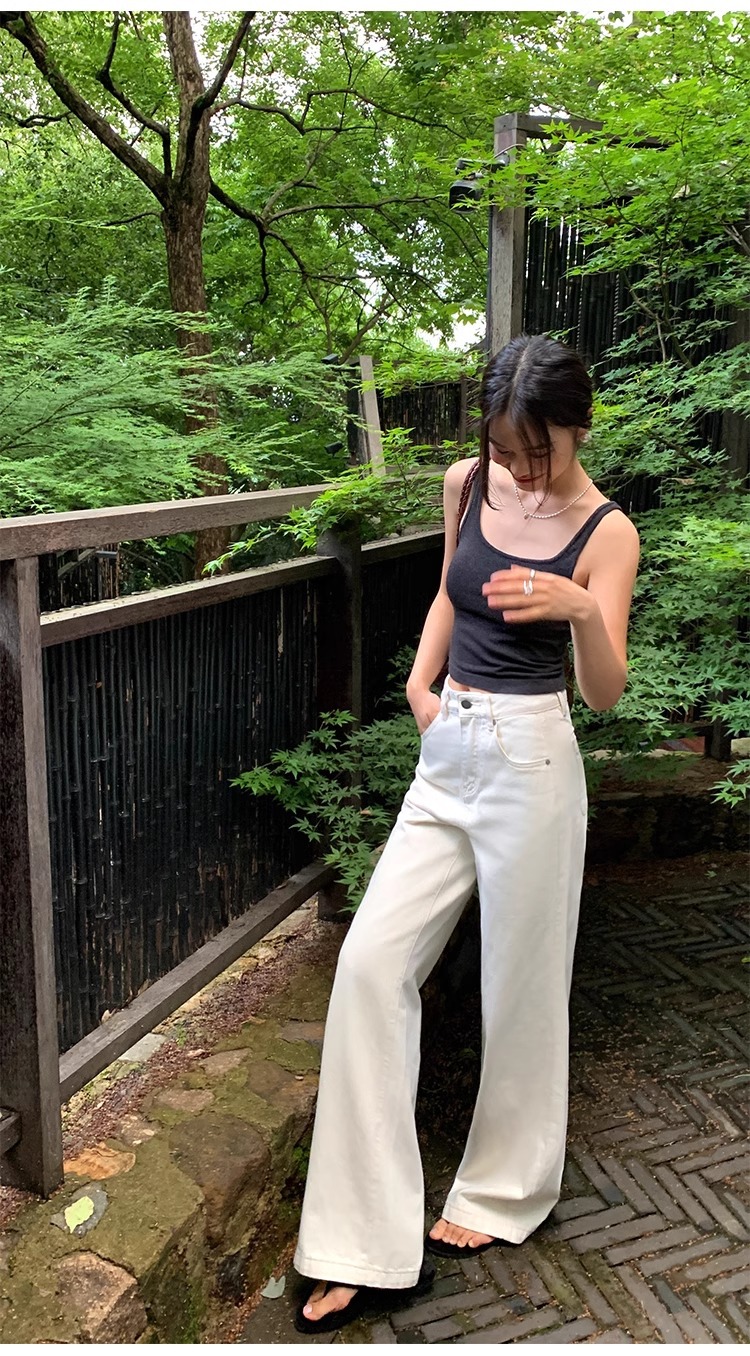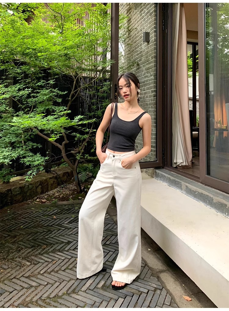 작은 좁은 2025 봄 흰색 넓은 다리 청바지 여성의 새로운 높은 허리 슬리밍 스트레이트 더미 바지스토어 가기