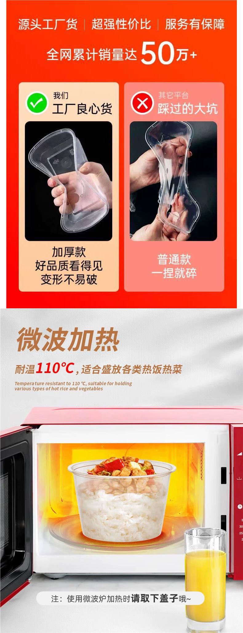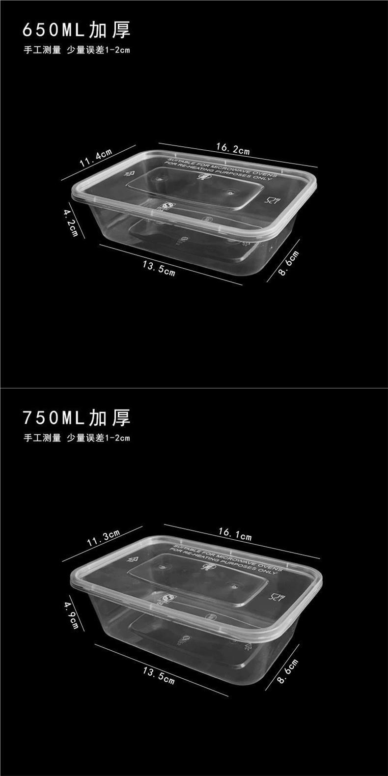 일회용 직사각형 볼링 박스 두꺼운 투명 고온 저항하는 전자 레인지 테이크 아웃 볼링 박스 뚜껑이있는 신선한 보관 상자스토어 가기