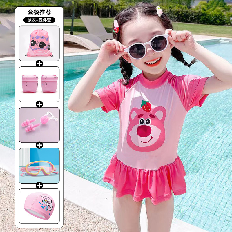 어린이 수영복 소녀 여름 공주 달콤한 멋진 귀여운 원피스 2025 새로운 빠른 건조 태양 보호 전문 여자 수영스토어 가기