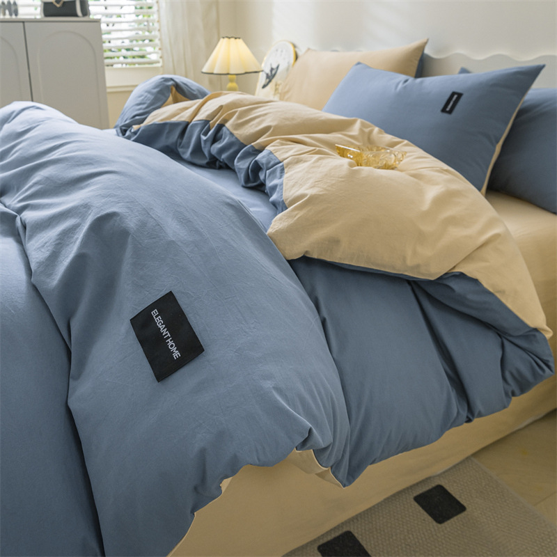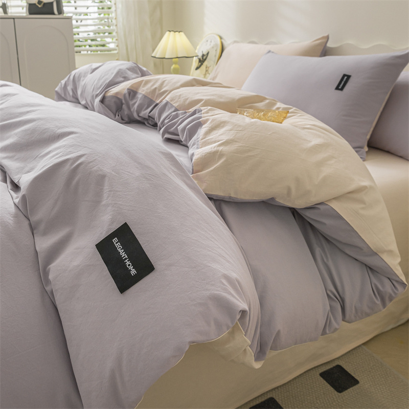씻은 면화 심플 인 스타일 4 피스 세트 면 100 면 침대 시트 퀼트 커버 침대 모자 기숙사 세트 침구스토어 가기