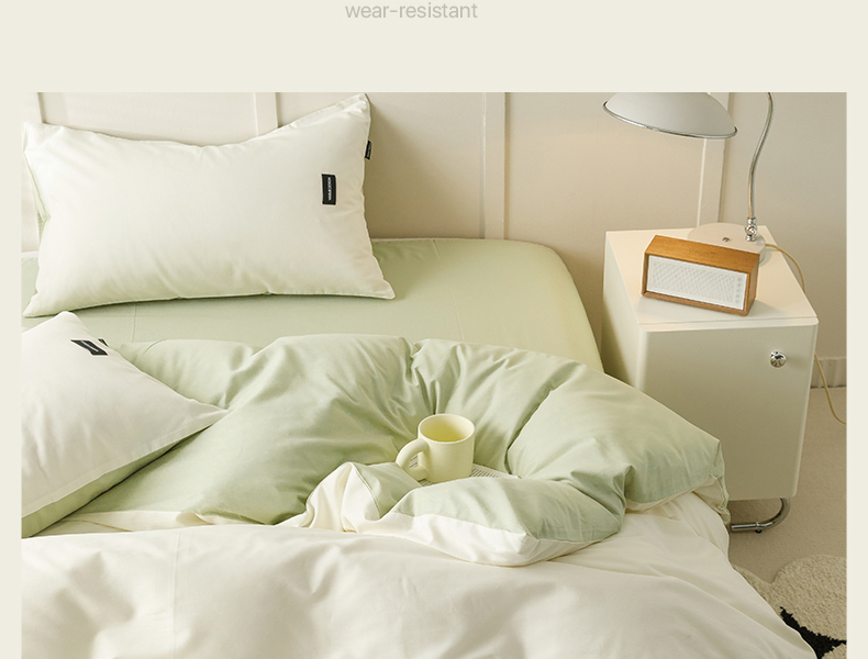 씻은 면화 심플 인 스타일 4 피스 세트 면 100 면 침대 시트 퀼트 커버 침대 모자 기숙사 세트 침구