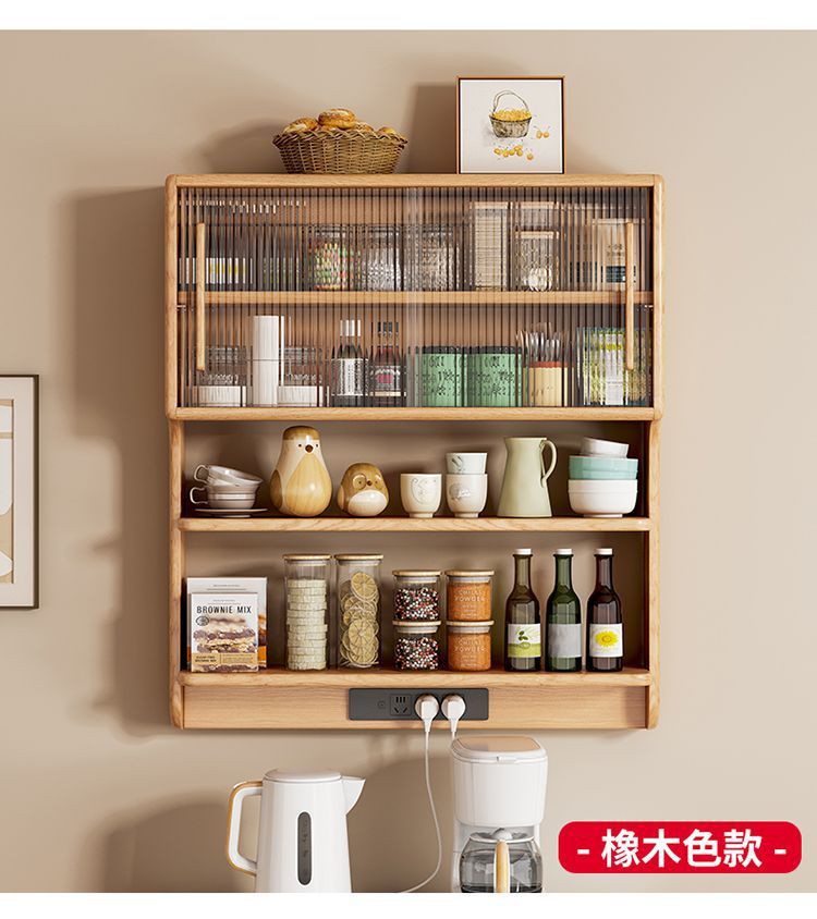 오크 벽걸이 서스펜션 사이드 보드 유리 보관 캐비닛 가정용 소형 아파트 주방 교수형 캐비닛 게스트 레스토랑 보관 캐비닛스토어 가기