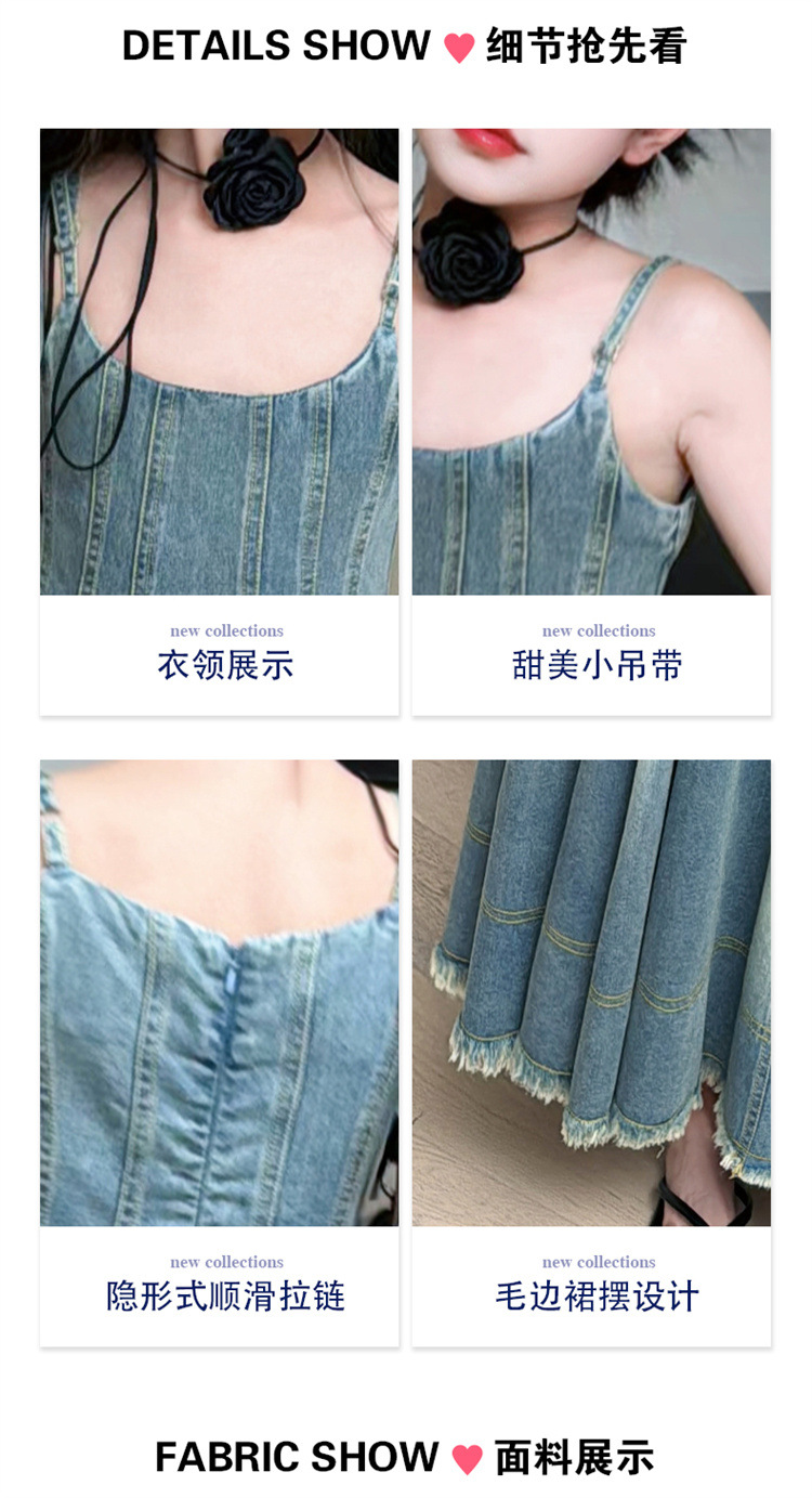 소녀 2025 새로운 여름 프랑스 스타일 레트로 데님 큰 반지와 슬림 핏 슬립 스커트 트렌디 한 소녀 스커트 원피스스토어 가기