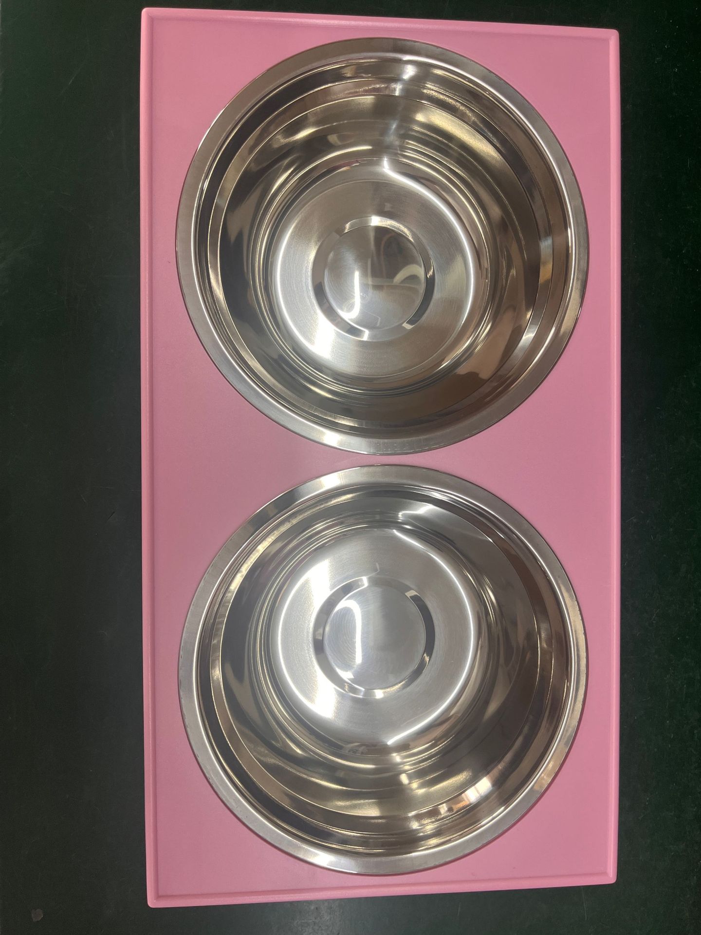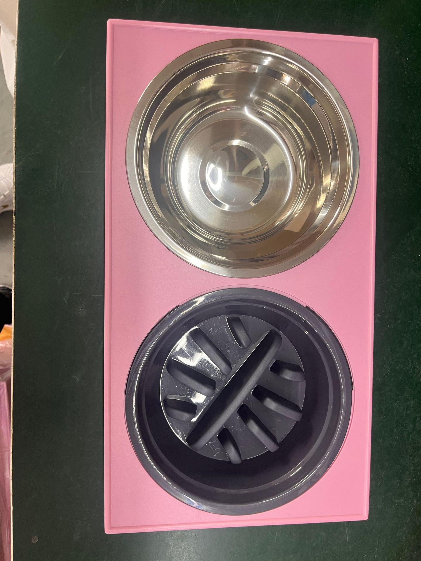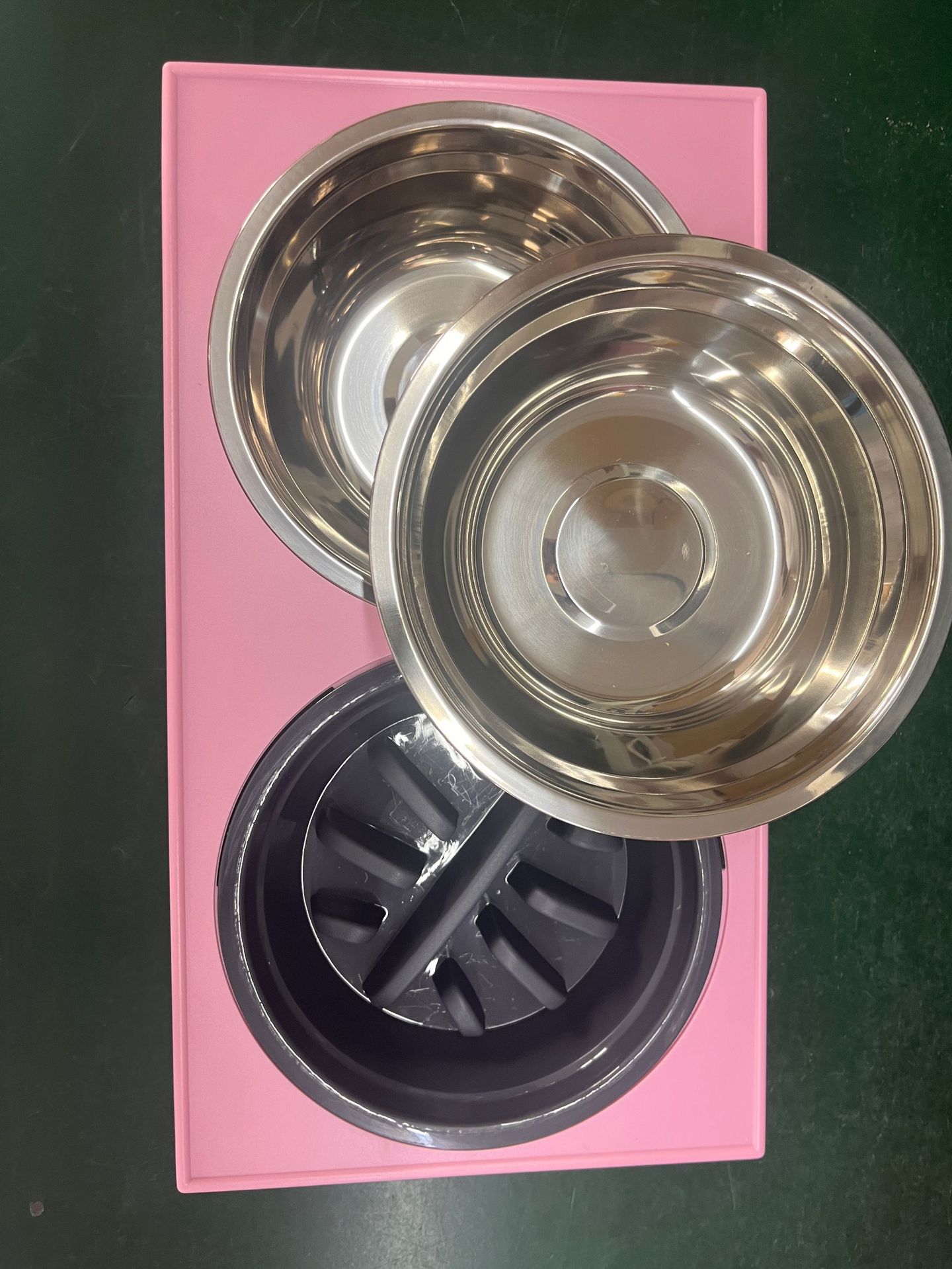 • 핑크색 식기 건조대 + 스테인리스 스틸 이중 식기 + 슬로우 식기 1개