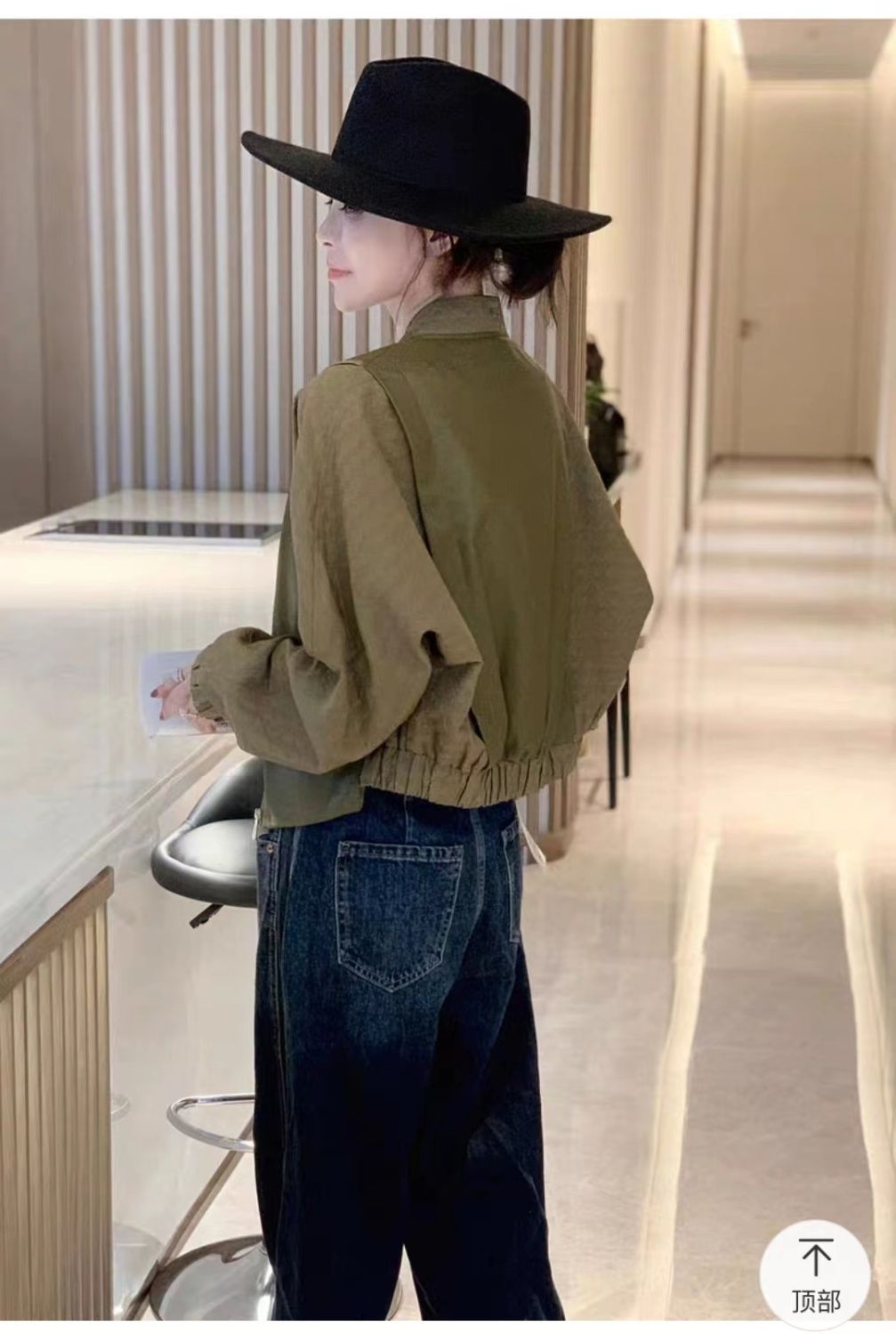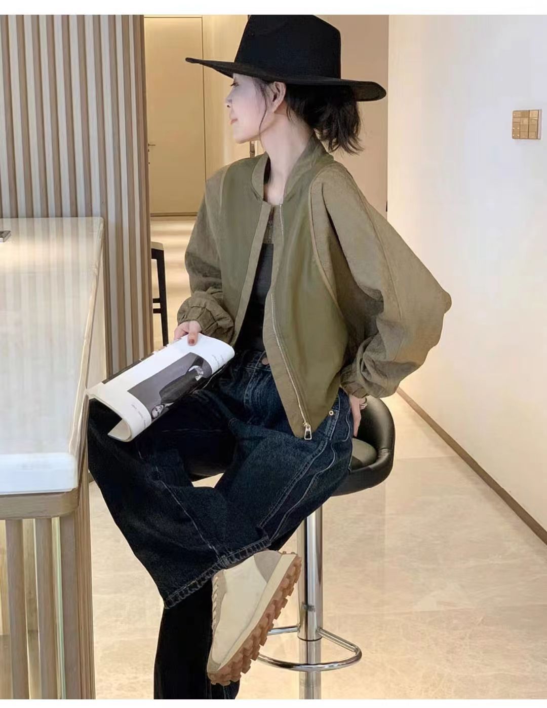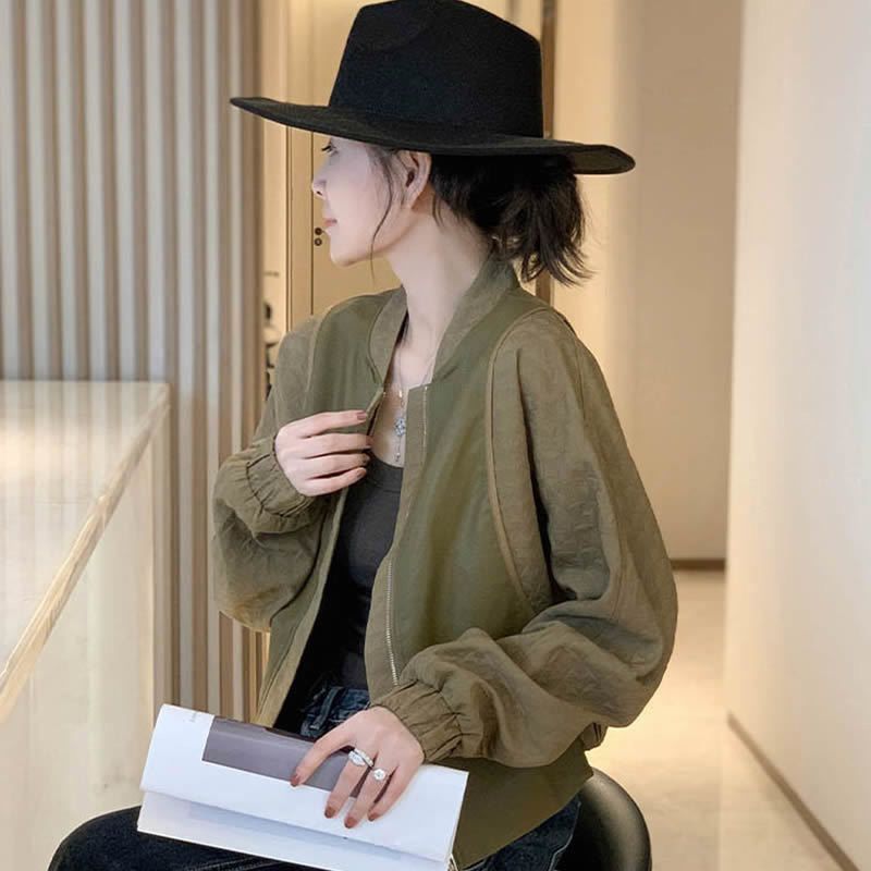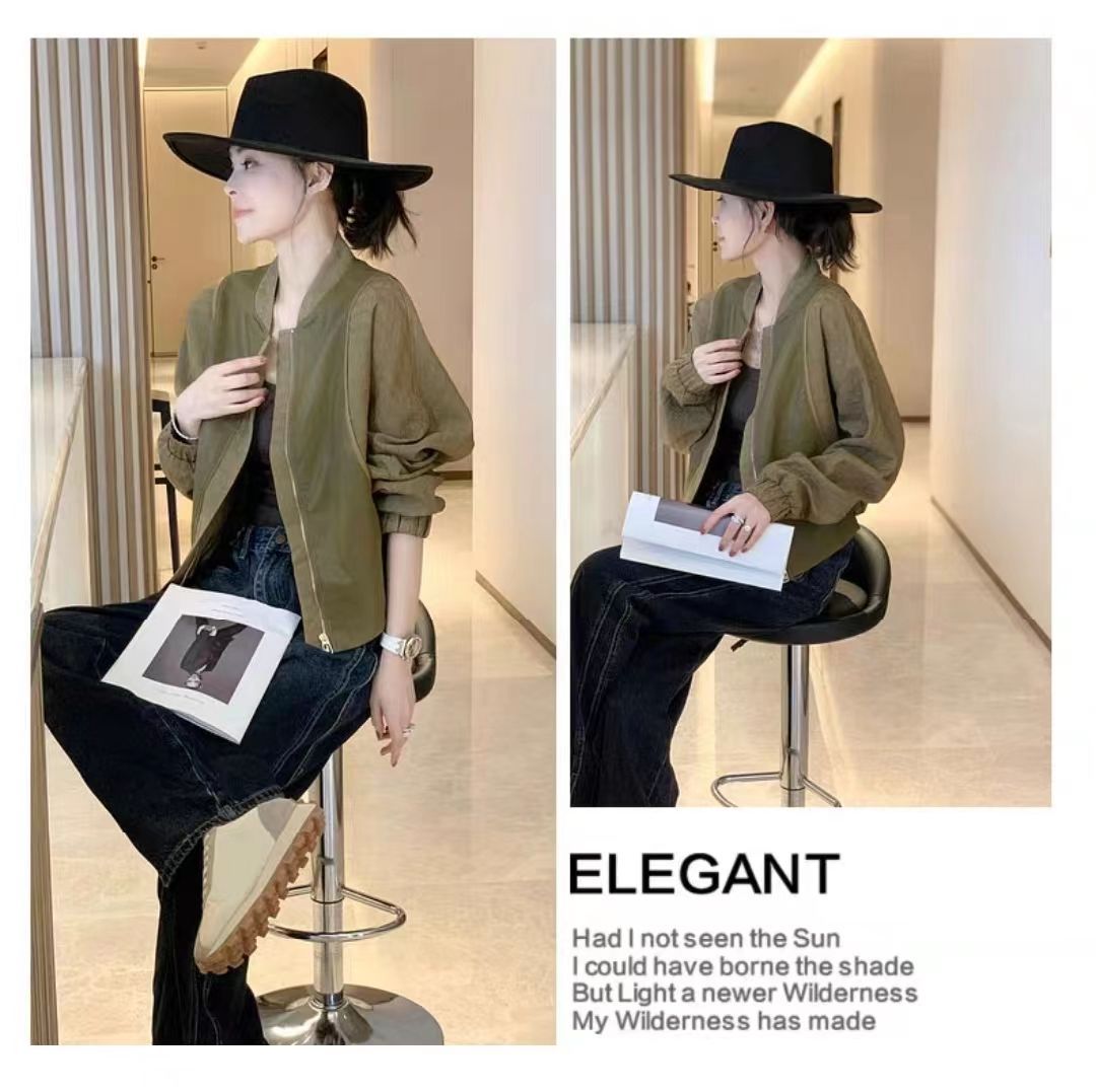봄과 가을 올 매치 박쥐 슬리브 여자 그린 얇은 재킷 짧은 야구 세트 작은 캐주얼 통근 자켓스토어 가기