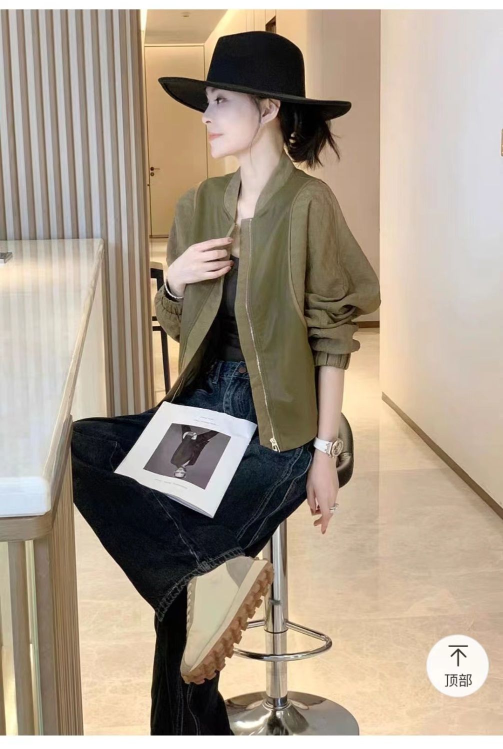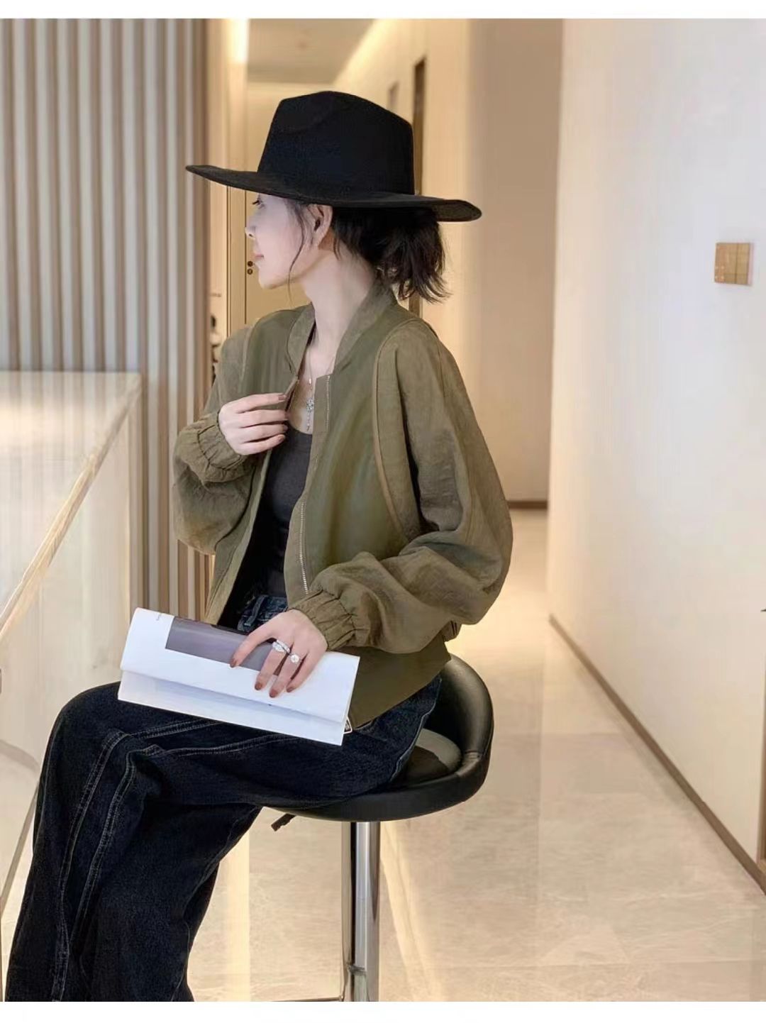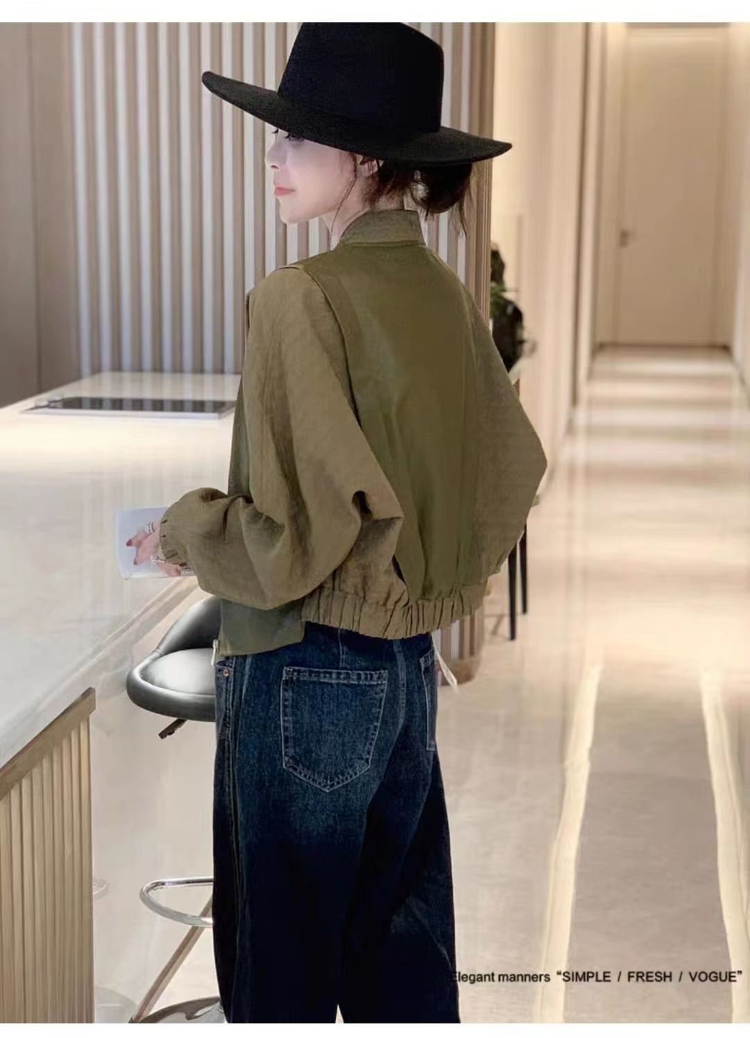 봄과 가을 올 매치 박쥐 슬리브 여자 그린 얇은 재킷 짧은 야구 세트 작은 캐주얼 통근 자켓스토어 가기