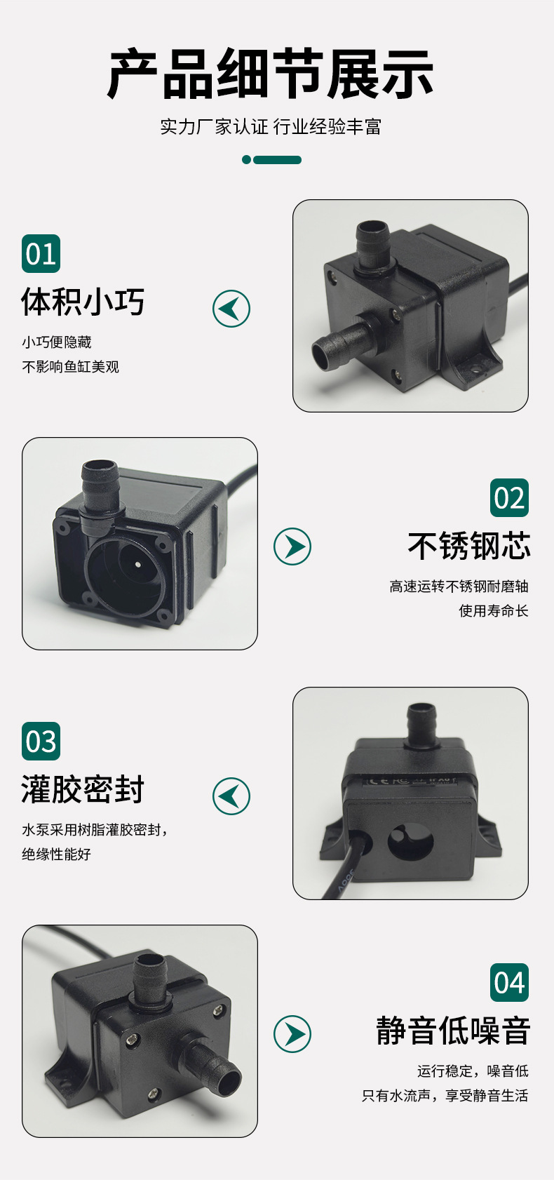 국경 간 DC12V5W 워터 펌프 컴퓨터 수냉 냉각 순환 DC 브러시리스 태양 광 USB 워터 펌프 사용자 정의