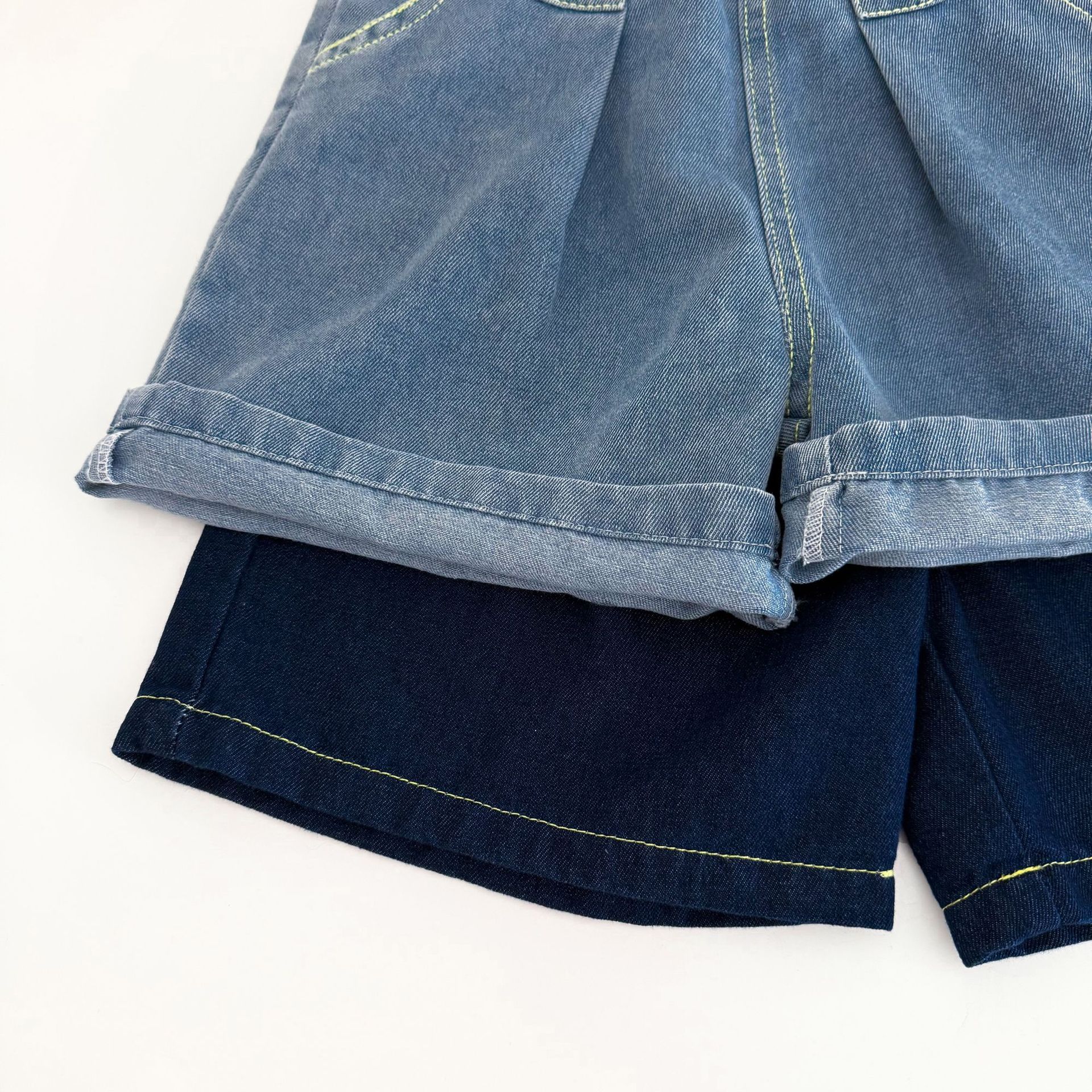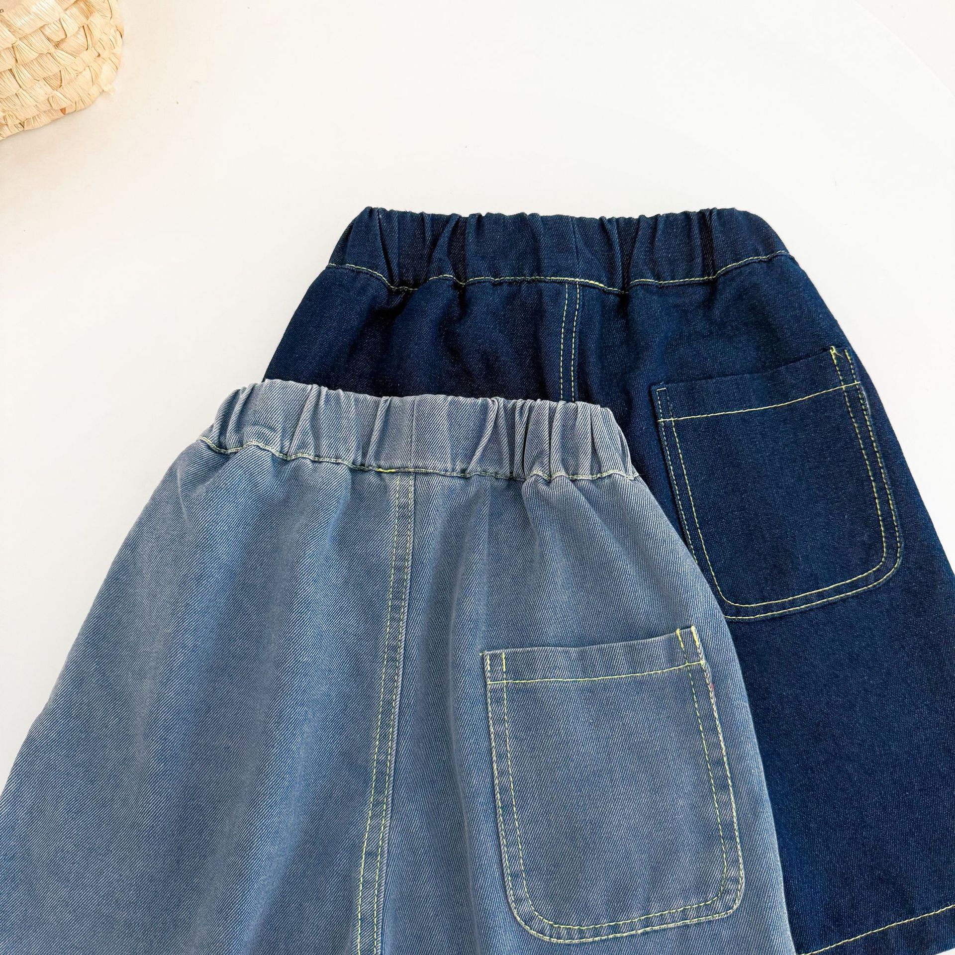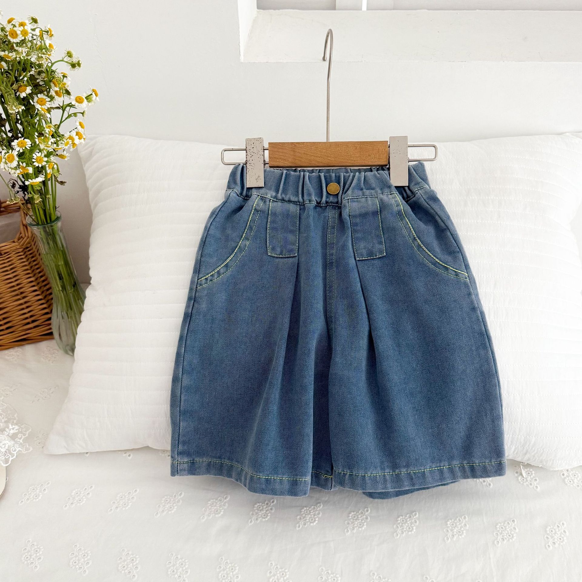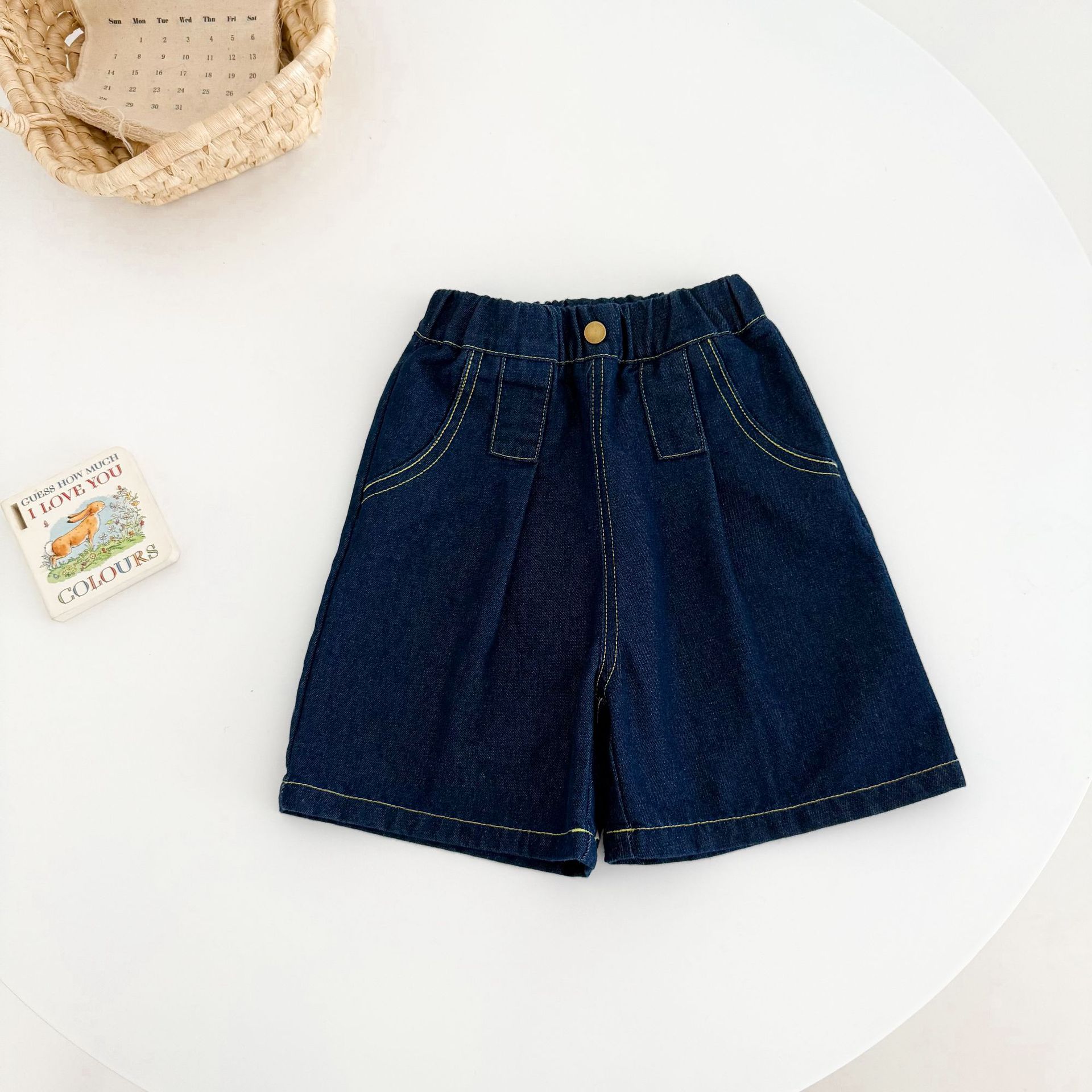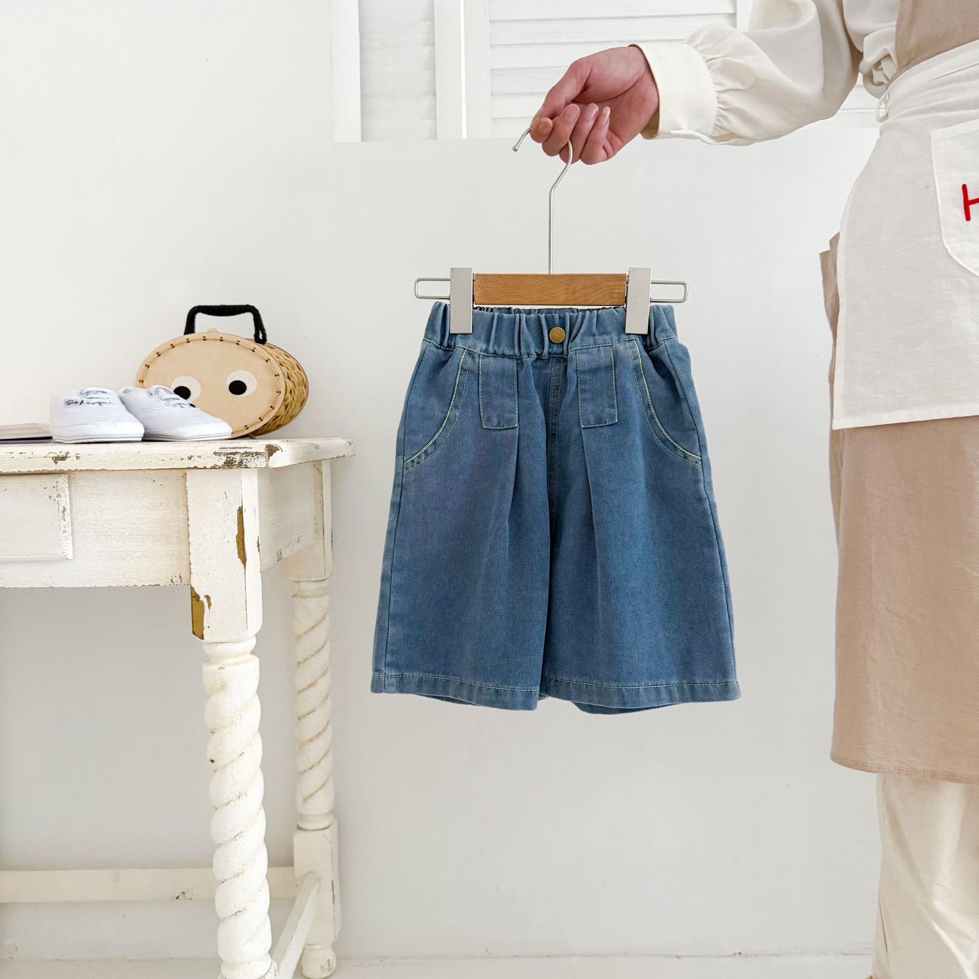 한국 어린이 데님 반바지 여름 중소형 어린이 소년 소녀 아기의 유행 중간 길이 바지 서양식 5 점 와이드 레그 바지