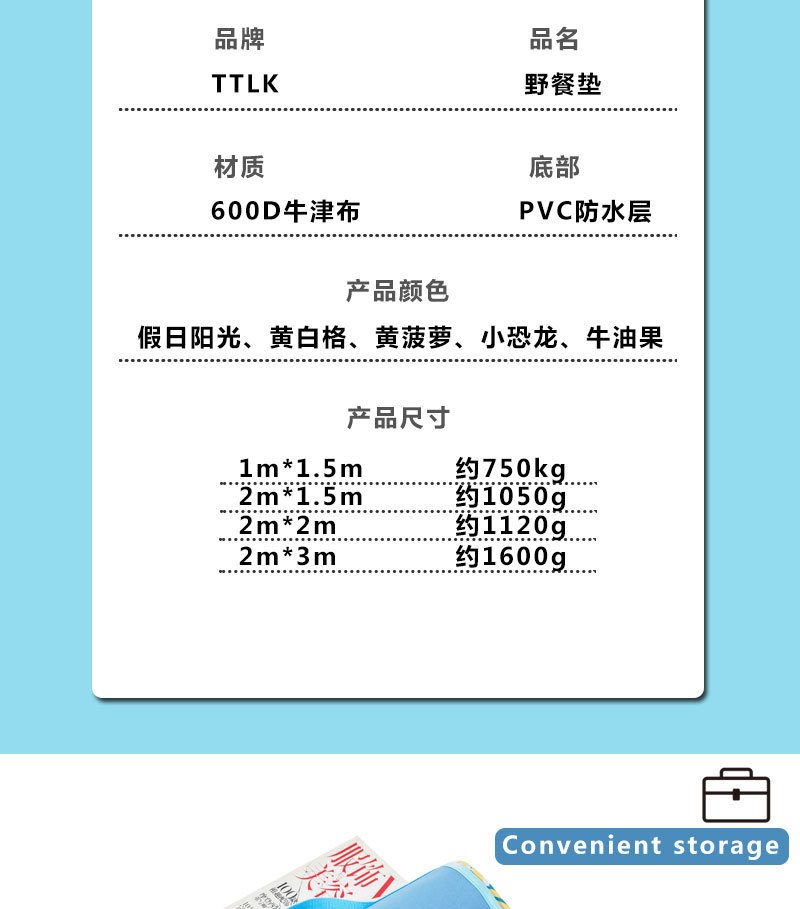 • Xiaofeiye + 피크닉 블루 [두꺼운 방수 및 방습]