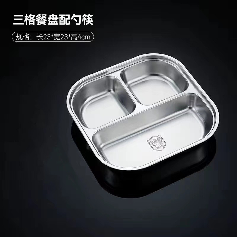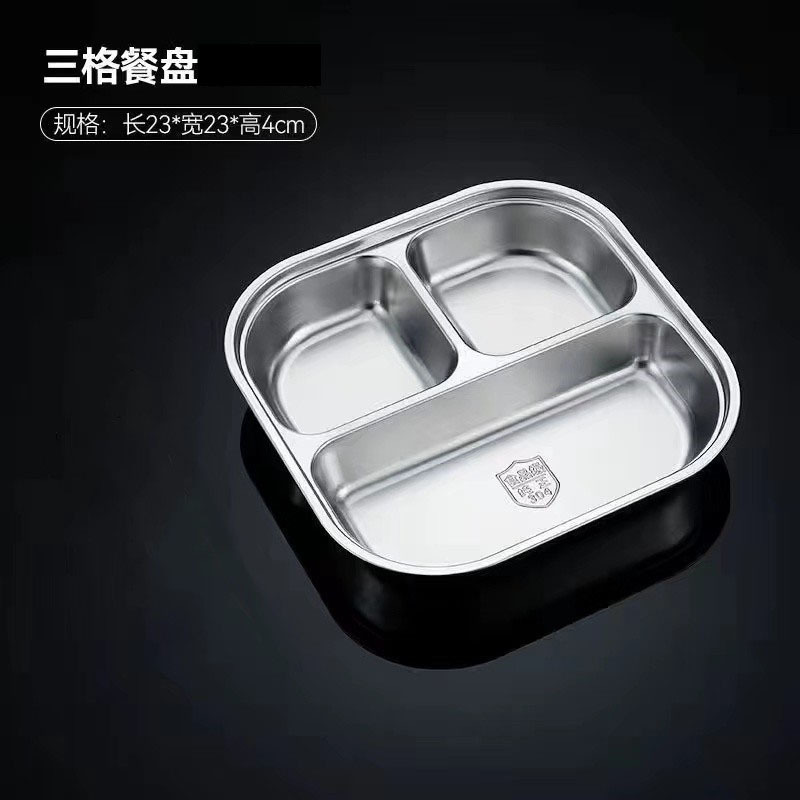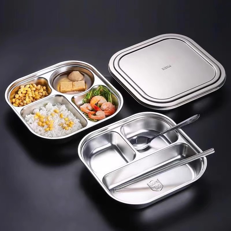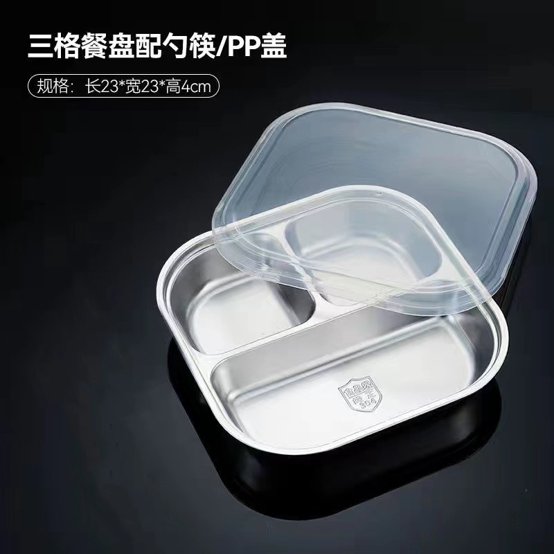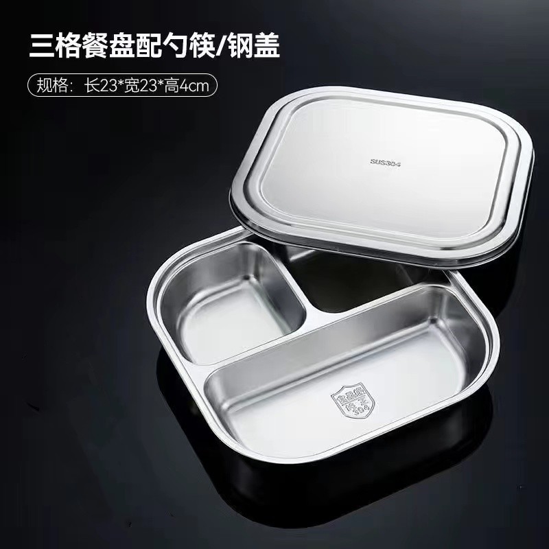 스테인레스 스틸 디너 플레이트 304 식품 학년 분할 패스트 푸드 플레이트 뚜껑 성인 학생 학교 3 칸 직원 식사 상자