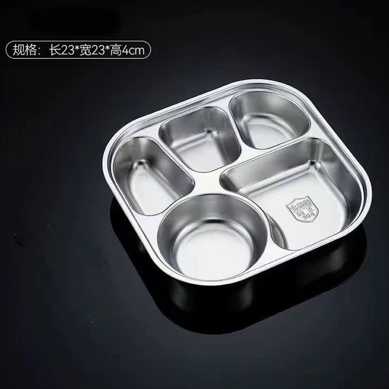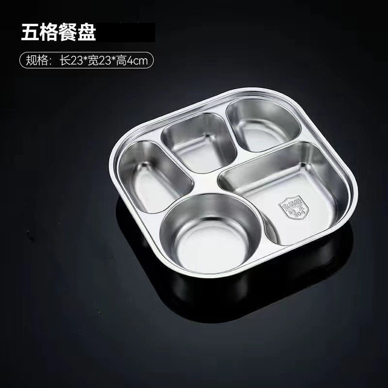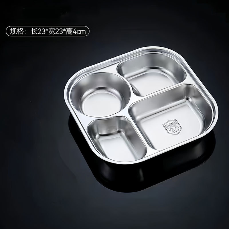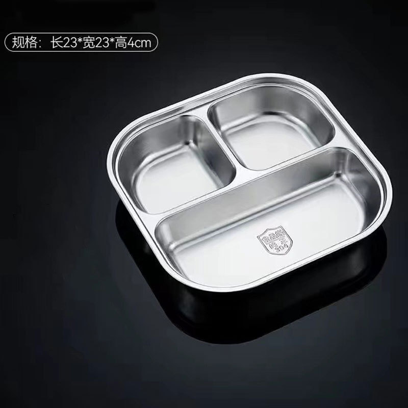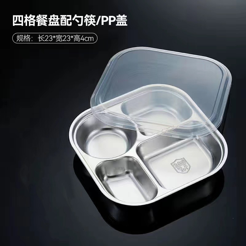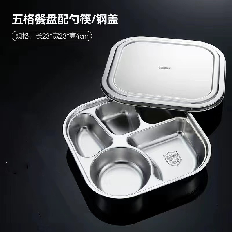 스테인레스 스틸 디너 플레이트 304 식품 학년 분할 패스트 푸드 플레이트 뚜껑 성인 학생 학교 3 칸 직원 식사 상자