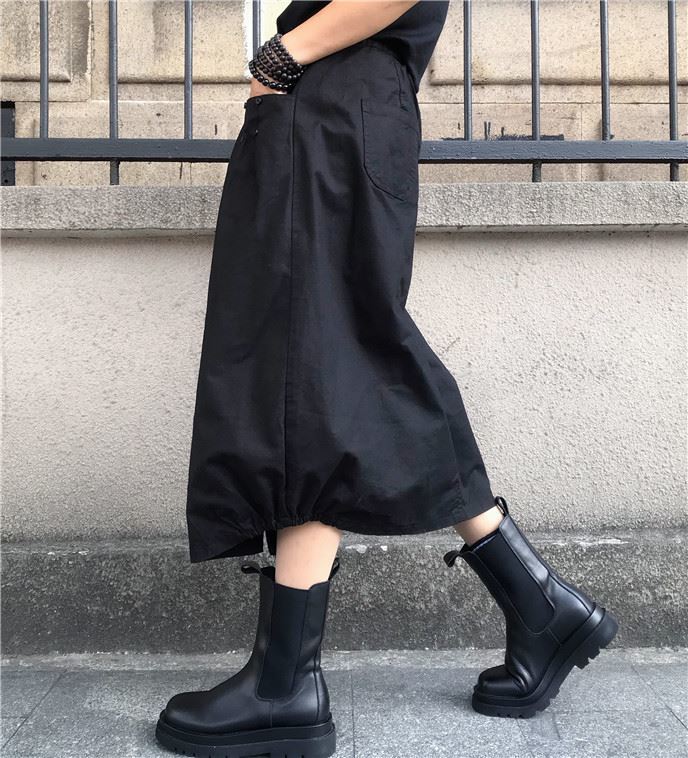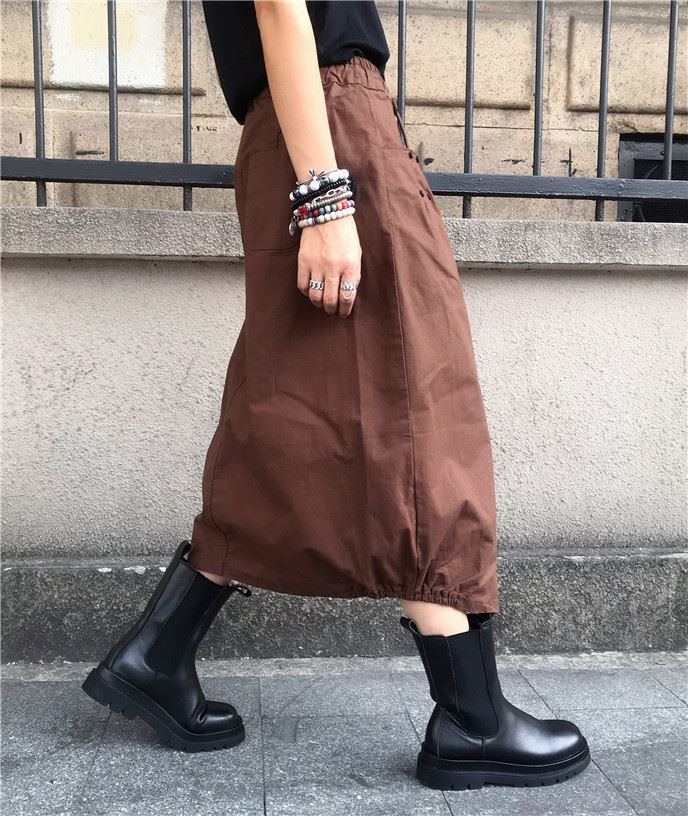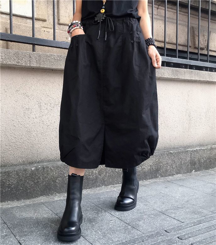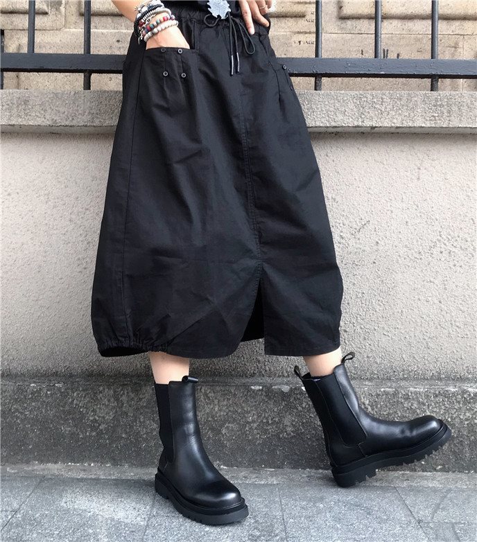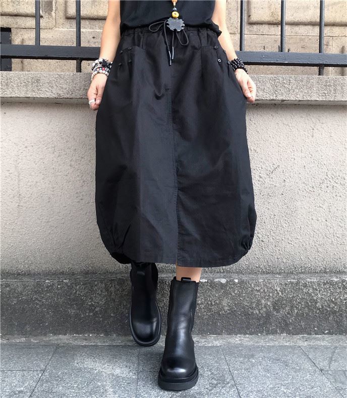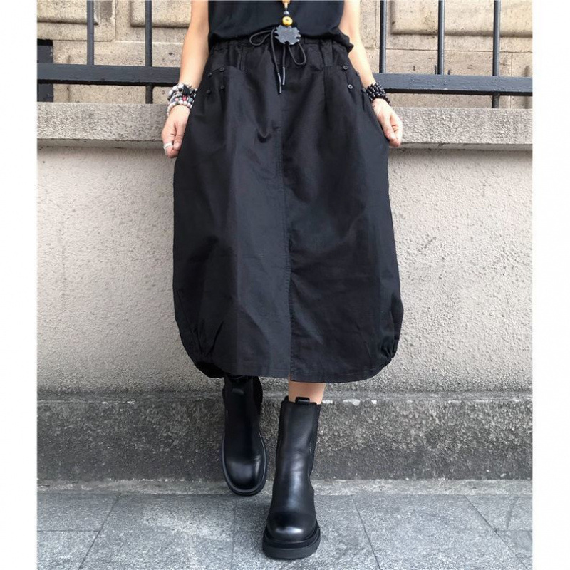 유럽 가을 플러스 사이즈 높은 허리 우아한 느슨한 허리 꽃 원피스 여성의 캐주얼 중간 길이의 모든 경기 스플릿 랜턴 스커트