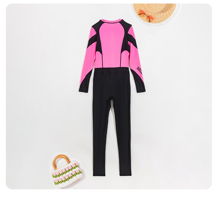 2026년 신상 컬러블록 다이빙 슈트 여성용 자외선 차단 긴팔 원피스 수영복 대형 사이즈 스포티하고 단정한 고급 수영복