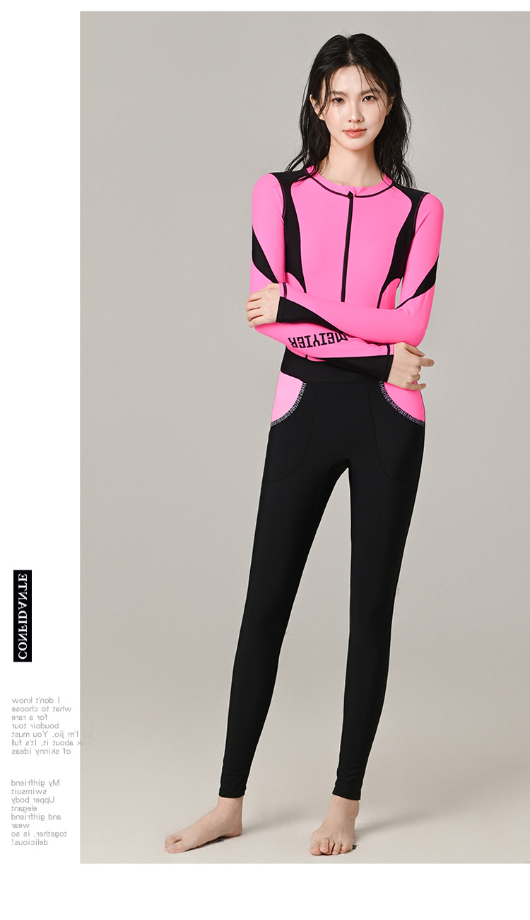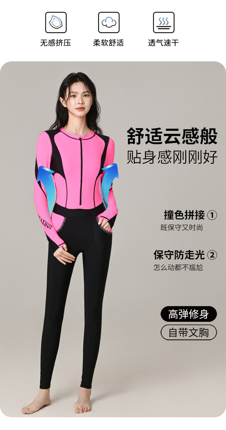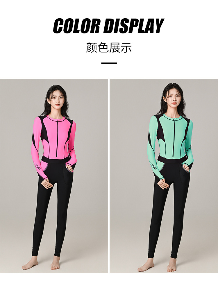 2026년 신상 컬러블록 다이빙 슈트 여성용 자외선 차단 긴팔 원피스 수영복 대형 사이즈 스포티하고 단정한 고급 수영복스토어 가기