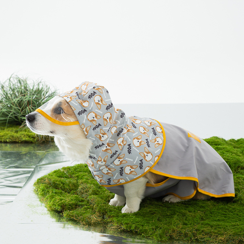 코기 개 전체 인쇄 대조 컬러 배 보호 코기 비옷 작은 개 비오는 날 방수 애완 동물 개 판초