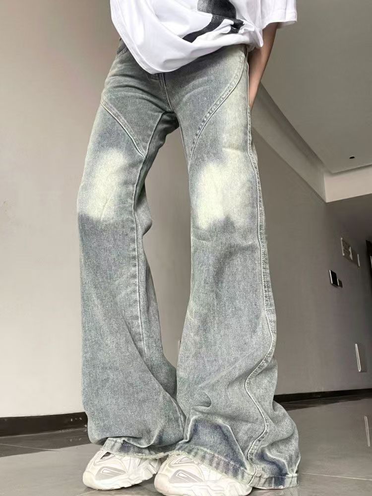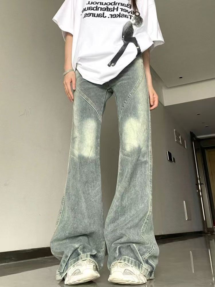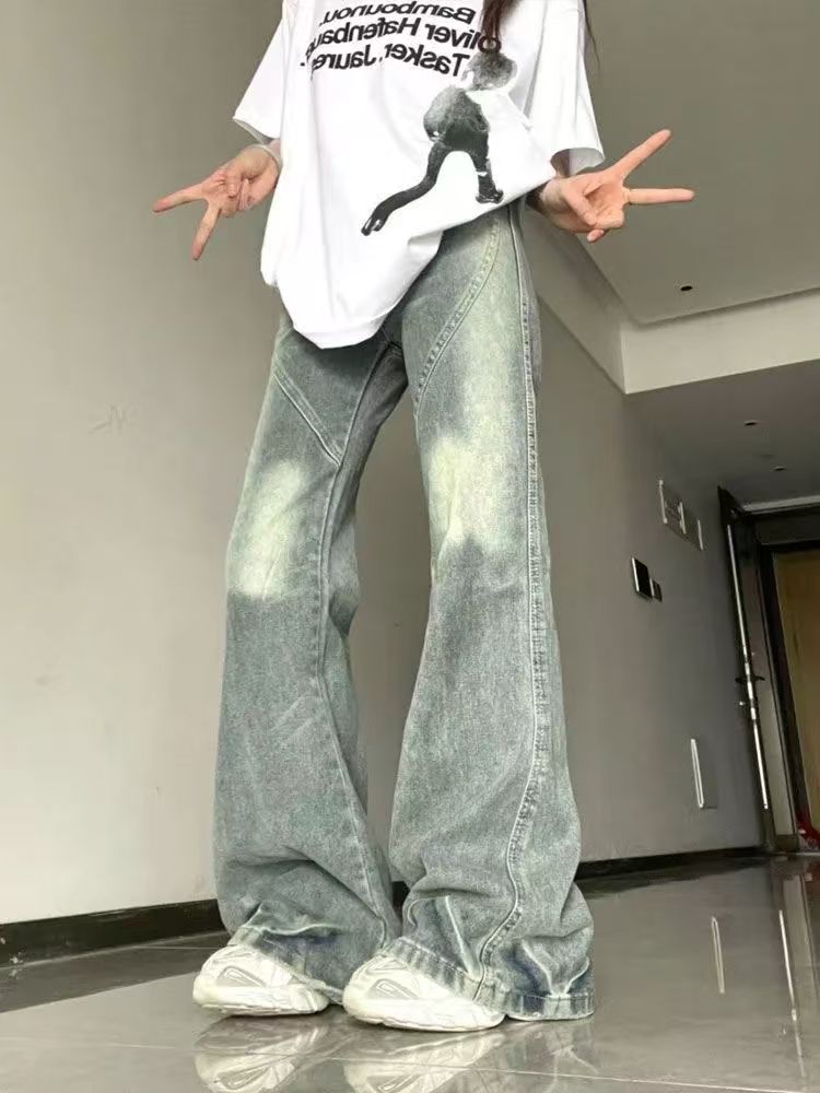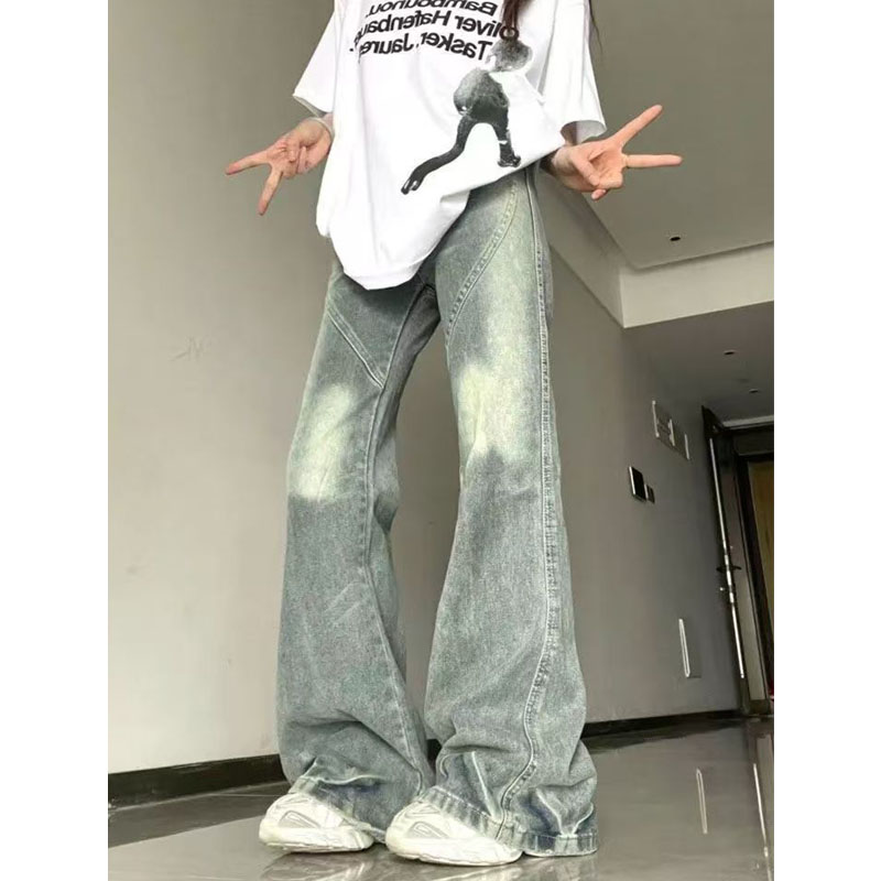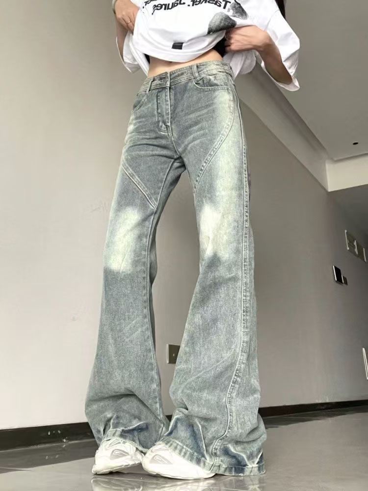 미국 복고풍 마이크로 플레어 청바지 여성의 봄과 가을 2025 새로운 스타일 작은 디자인 감각 넓은 다리 바지스토어 가기