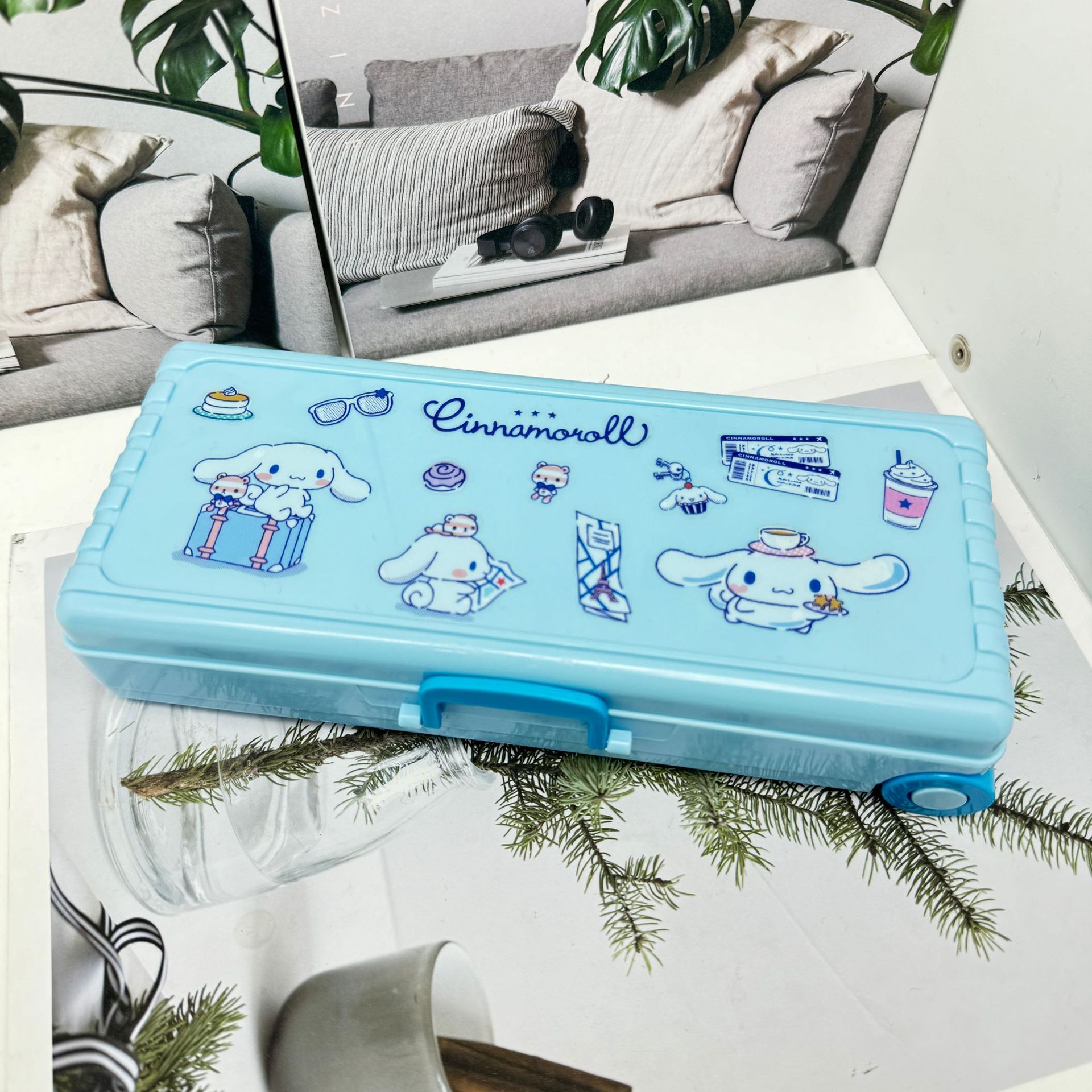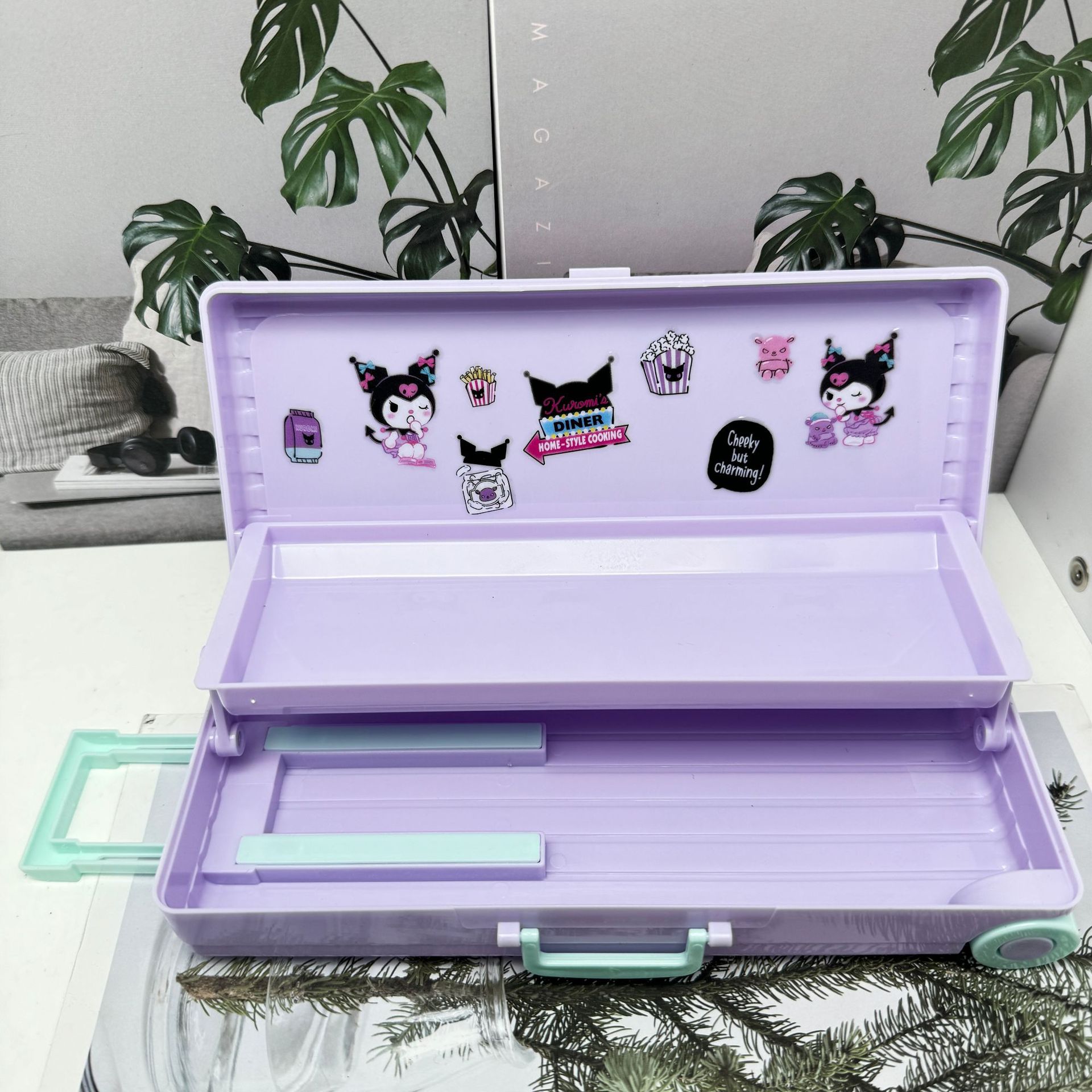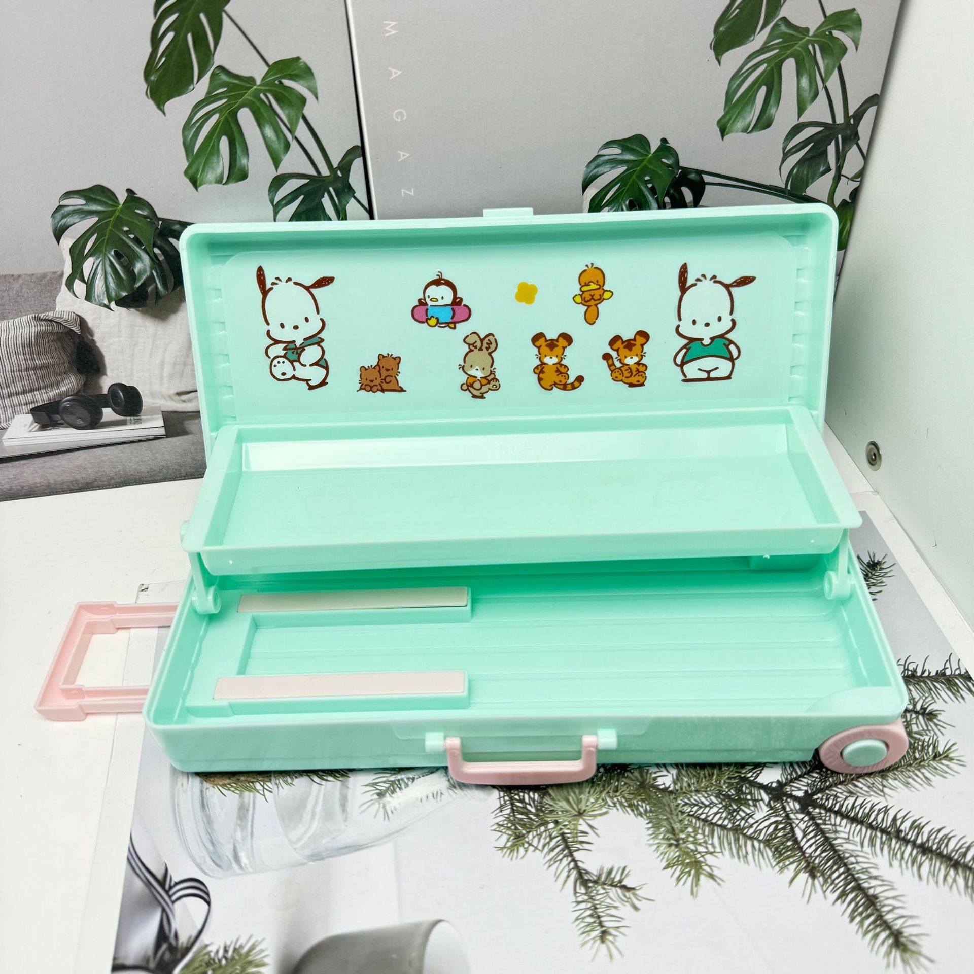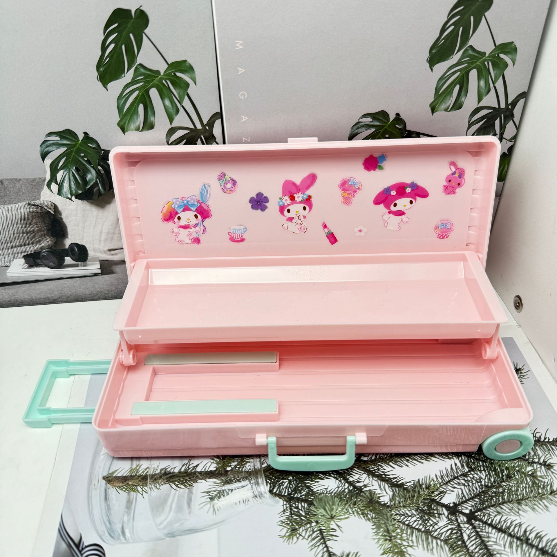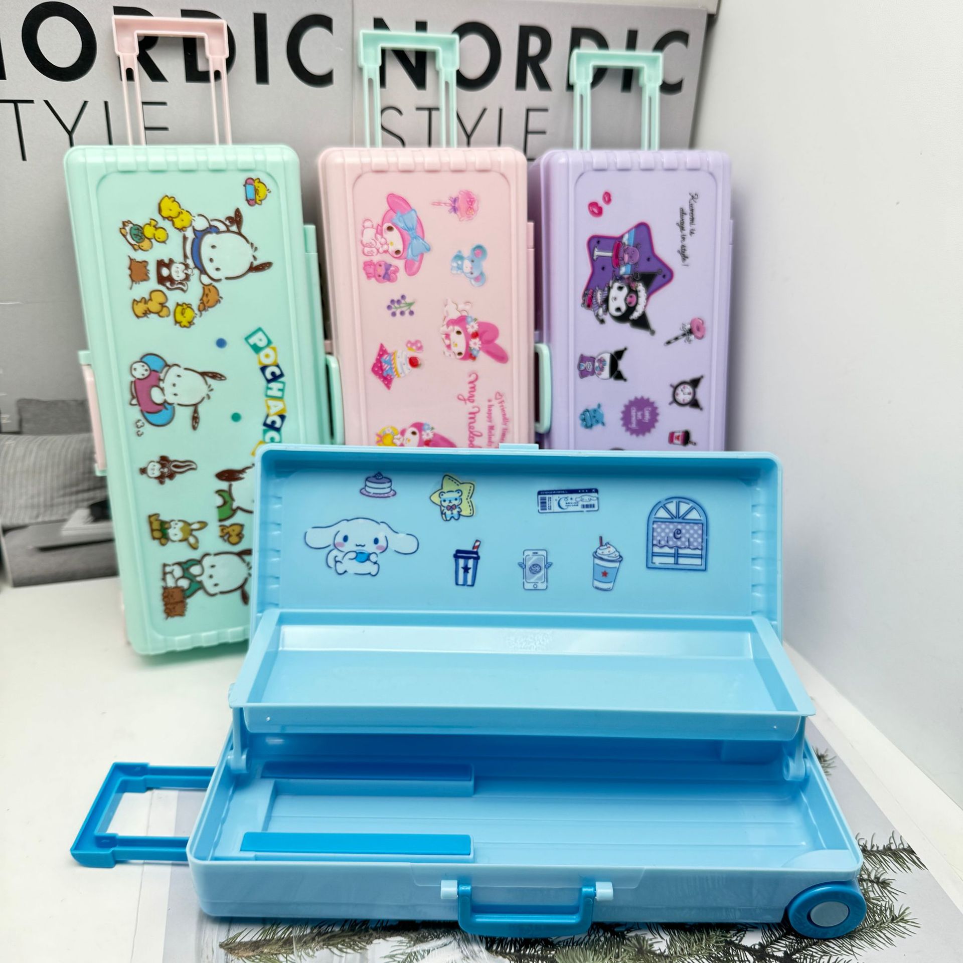 더블 레이어 대용량 트롤리 케이스 모양의 펜 케이스 어린이 DIY 플라스틱 문구 상자 소년과 소녀 학생 연필 보관