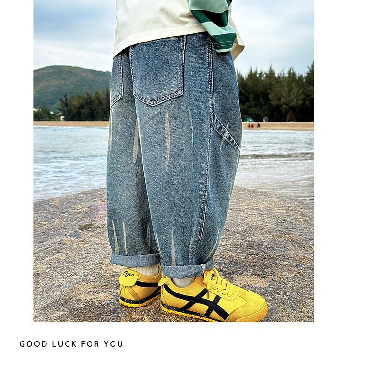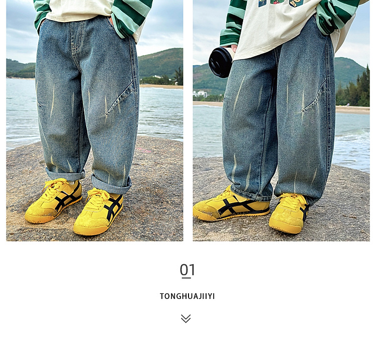 동화메모리 남아 청바지 봄 스타일 아동 바지 2026 신상 캐주얼 남아 멋진 루즈핏 롱팬츠스토어 가기