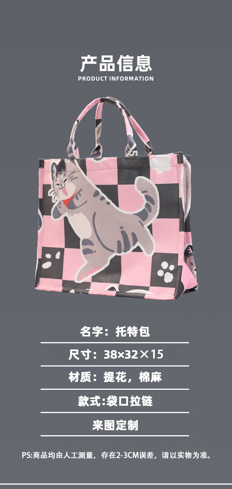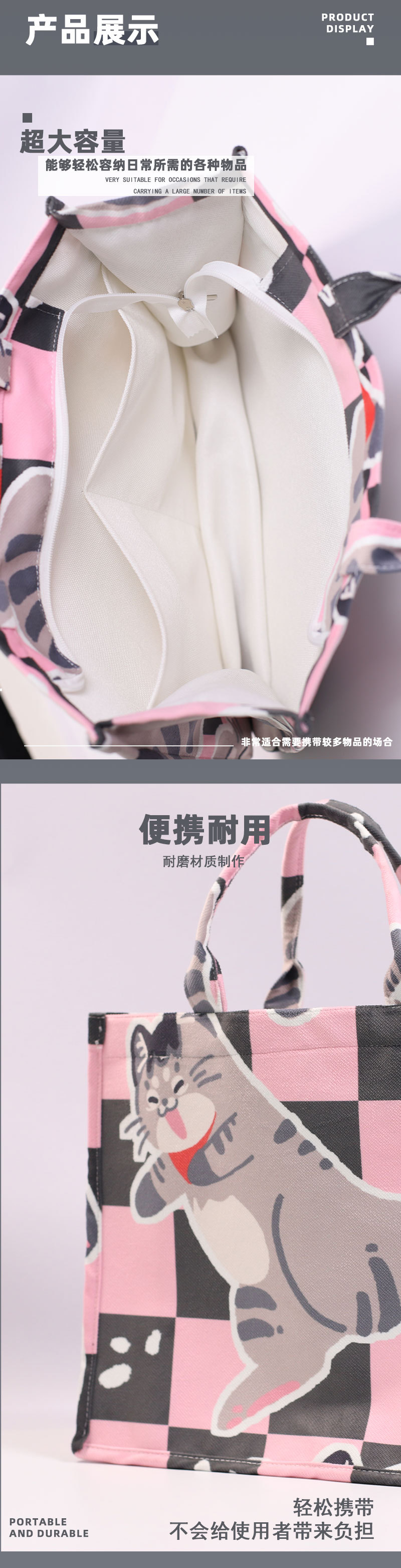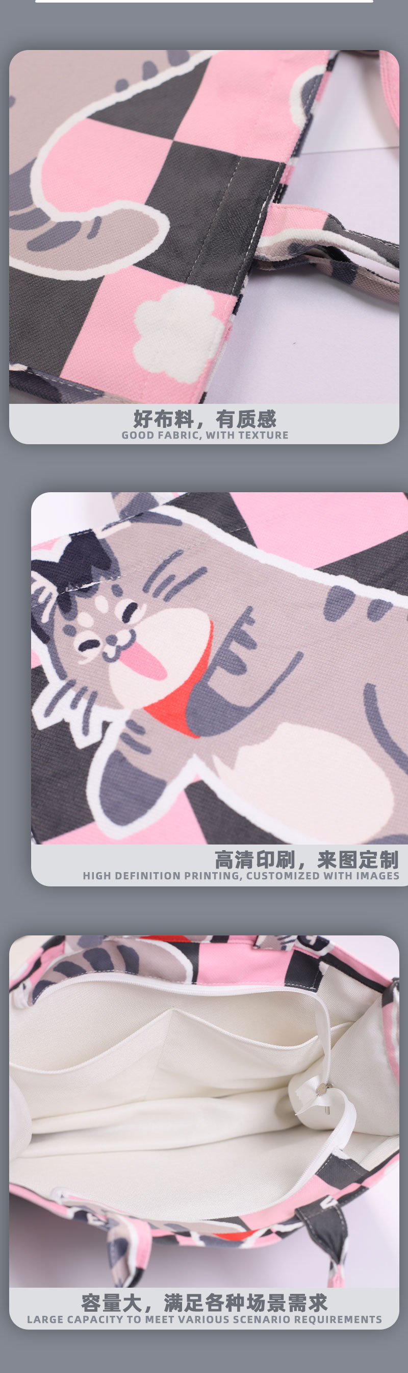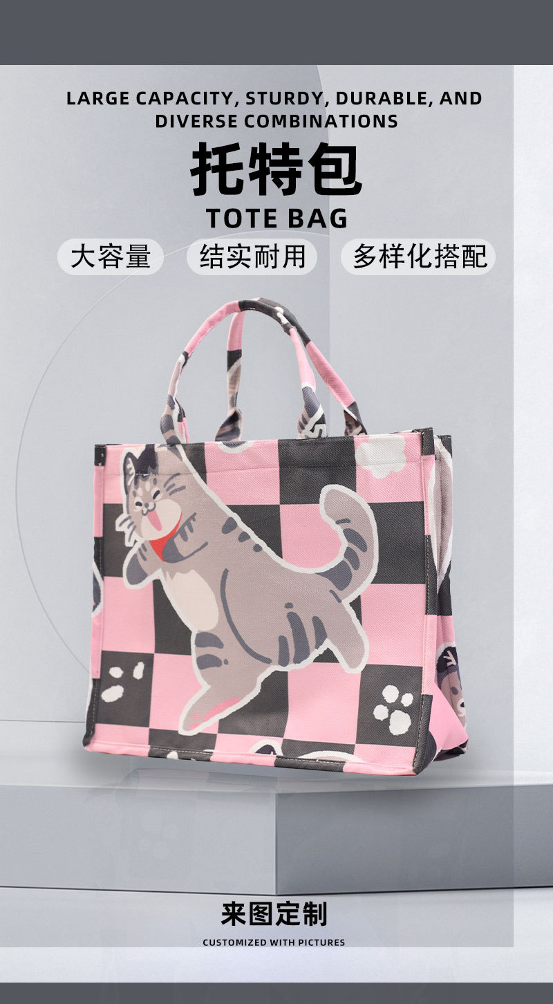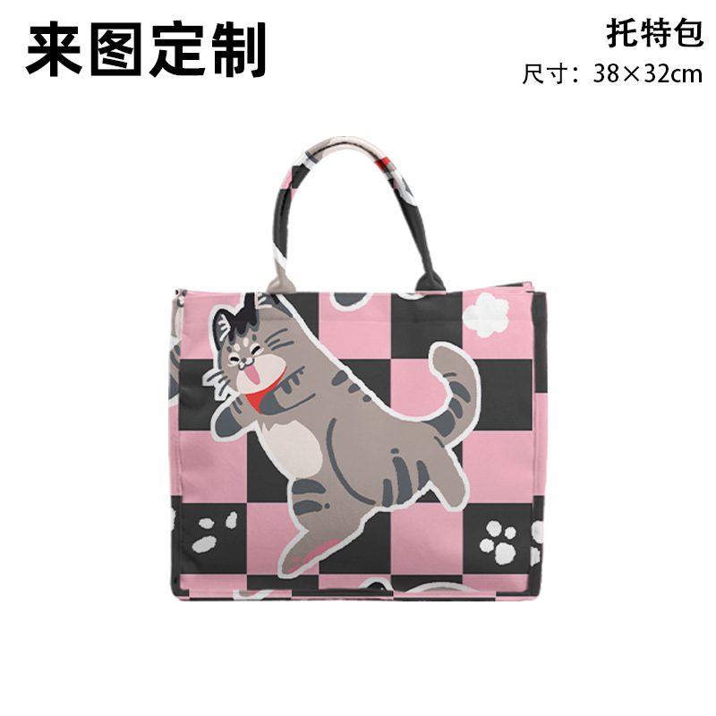 사진으로 맞춤형 자카드 캔버스 입체 토트 백 애니메이션 인쇄 대용량 핸드백 소녀 쇼핑백 도매스토어 가기