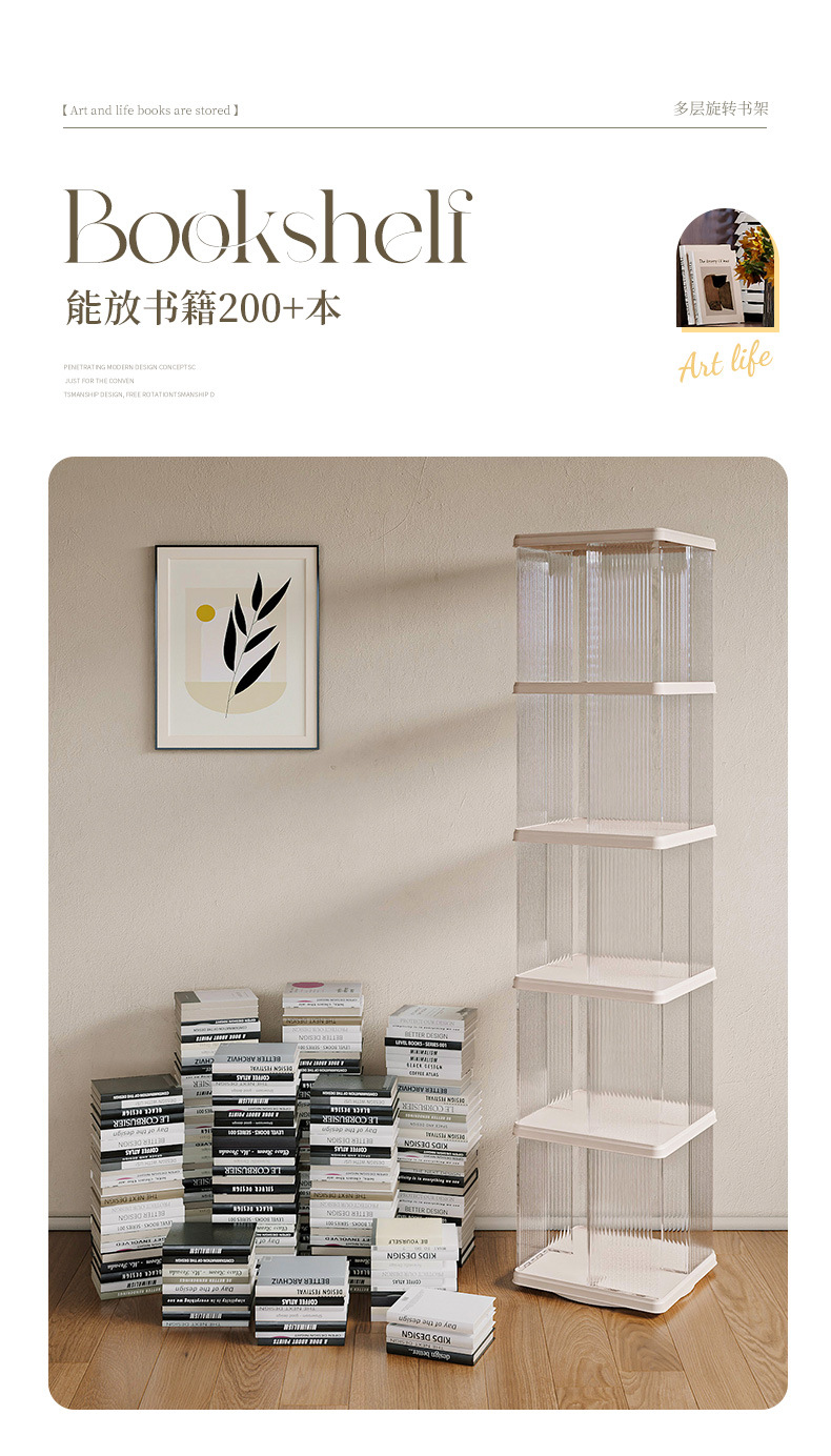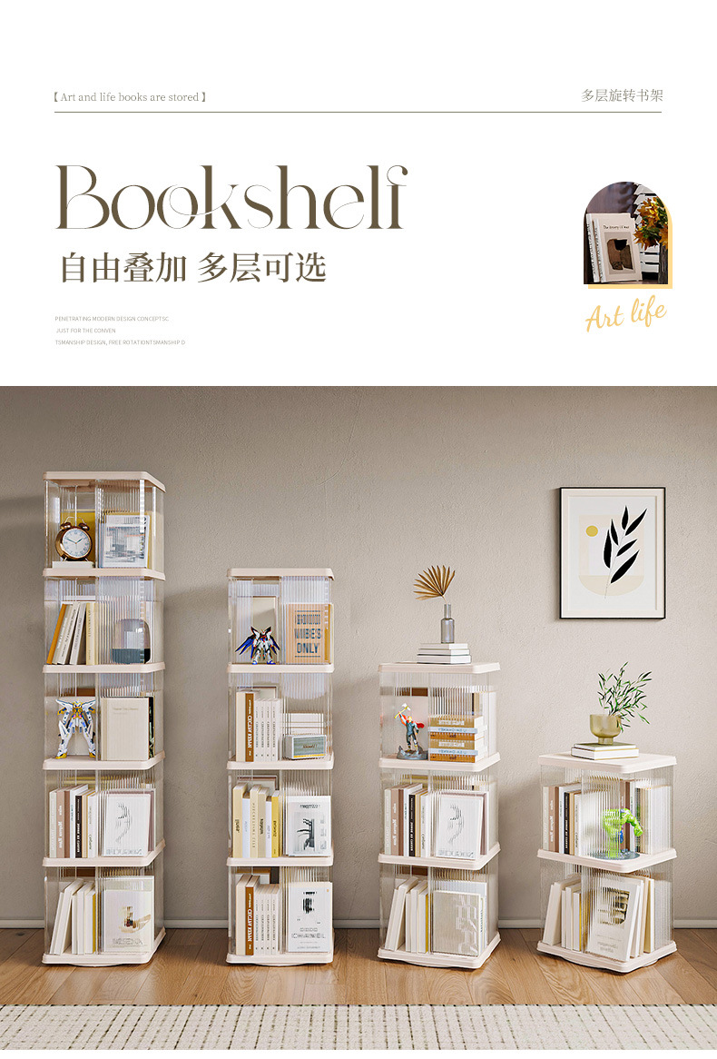 360 도 회전 책장 투명 책장 어린이 그림책 보관 랙 가정용 학생 간단한 유니버설 휠 보관 랙