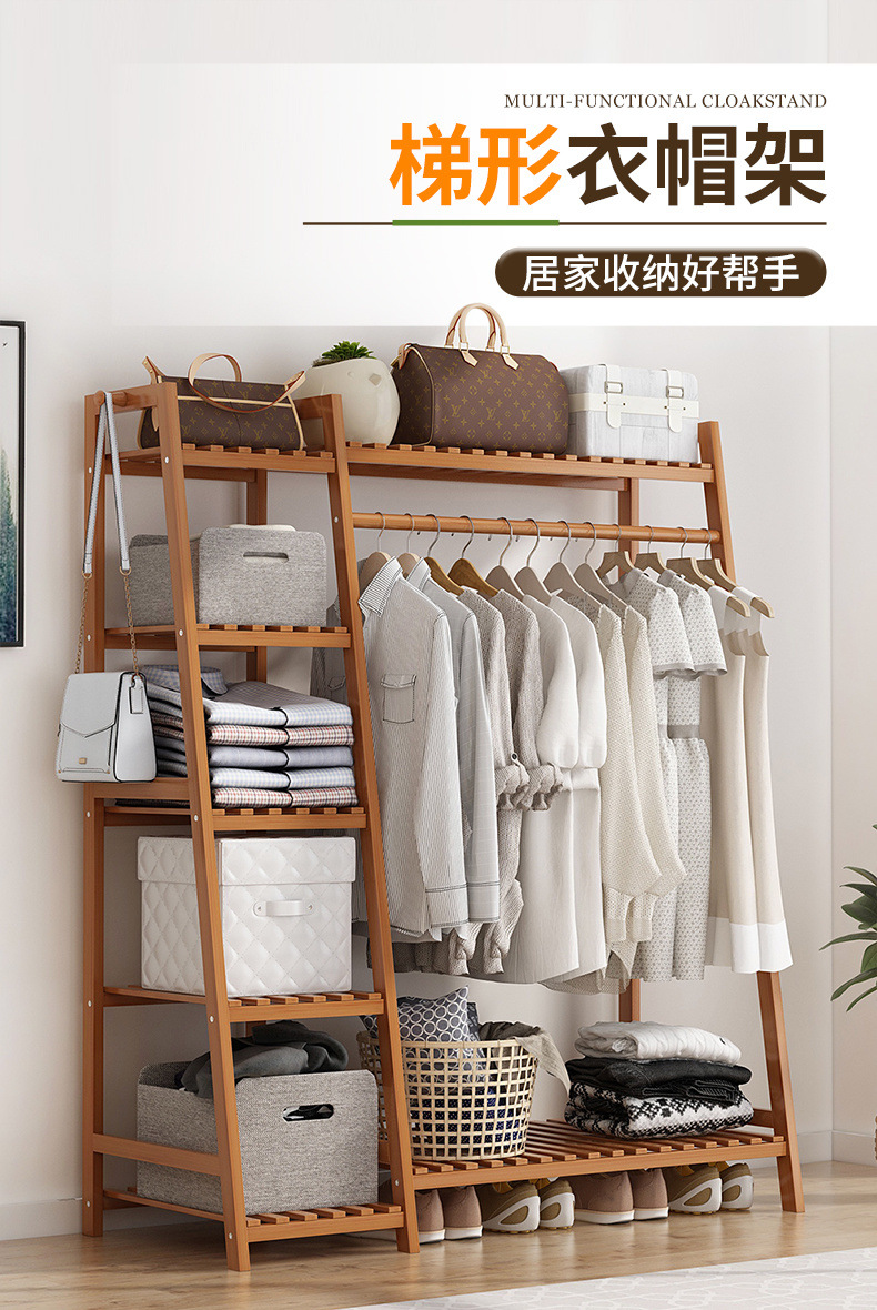 옷걸이 바닥 랙 침실 간단한 옷장 보관 랙 대나무 코트 랙 다기능 의류 랙
