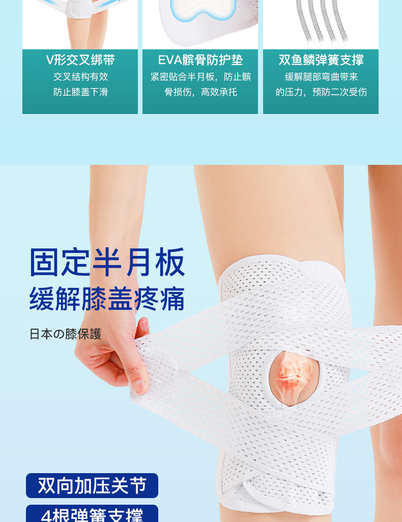 일본 8세대 반월판 경량 통기성 무릎 패드 러닝 스포츠 등산 스프링 지지대 미끄럼 방지 가압 무릎 패드