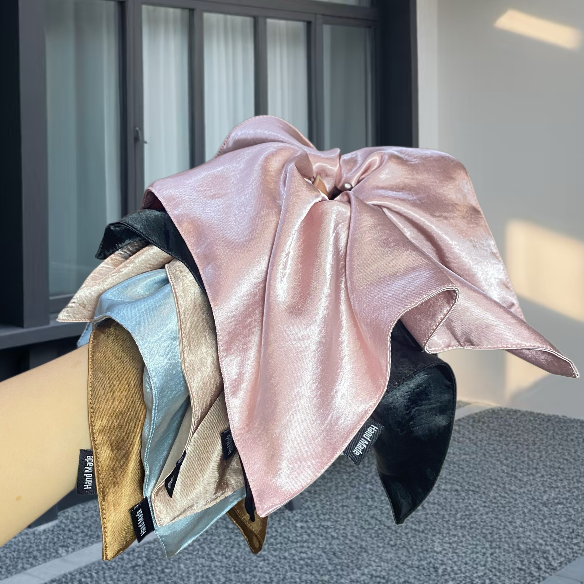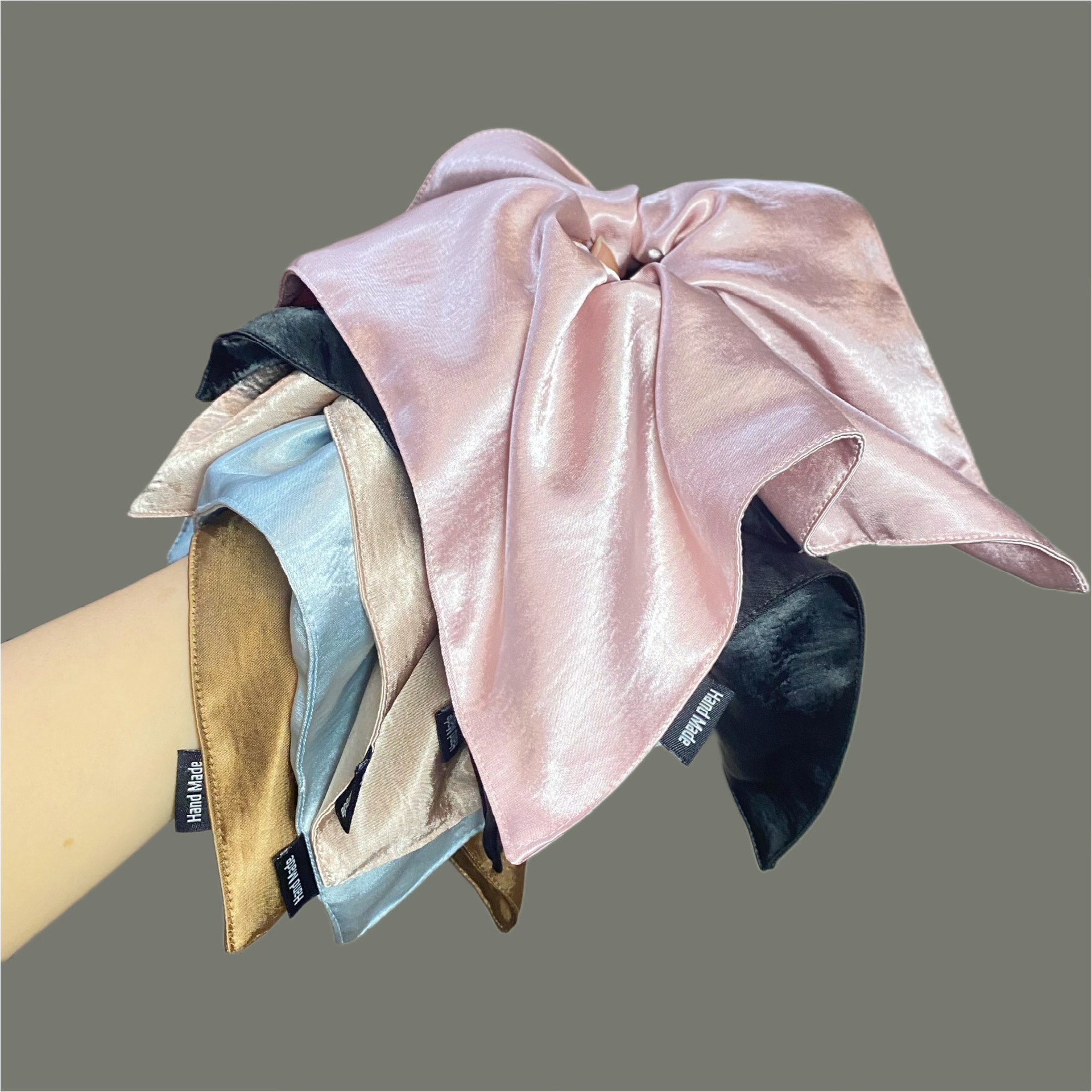 한국식 고급 솔리드 컬러 광택 헤어 링 레트로 올매치 스퀘어 스카프 그릇 세련된 패션 헤어 액세서리 헤드웨어
